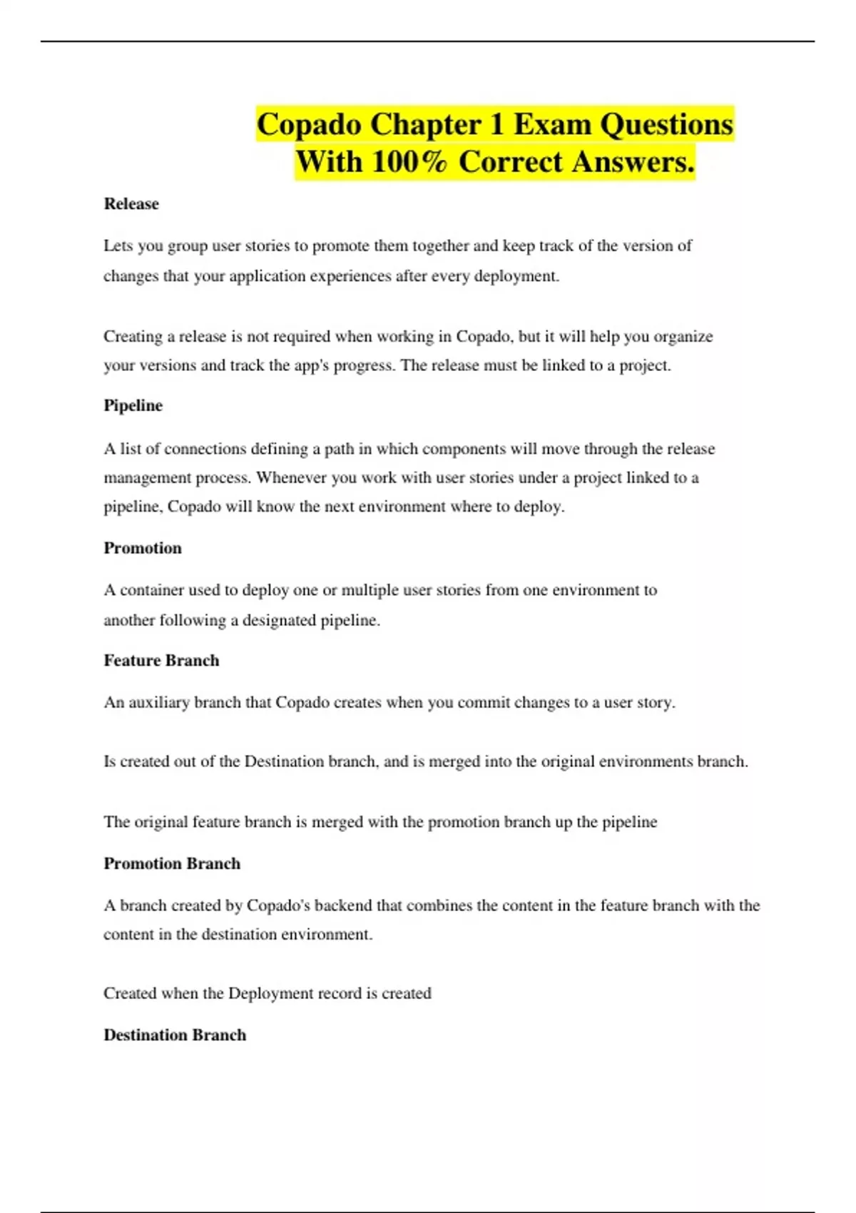 Copado Chapter 1 Exam Questions With 100% Correct Answers