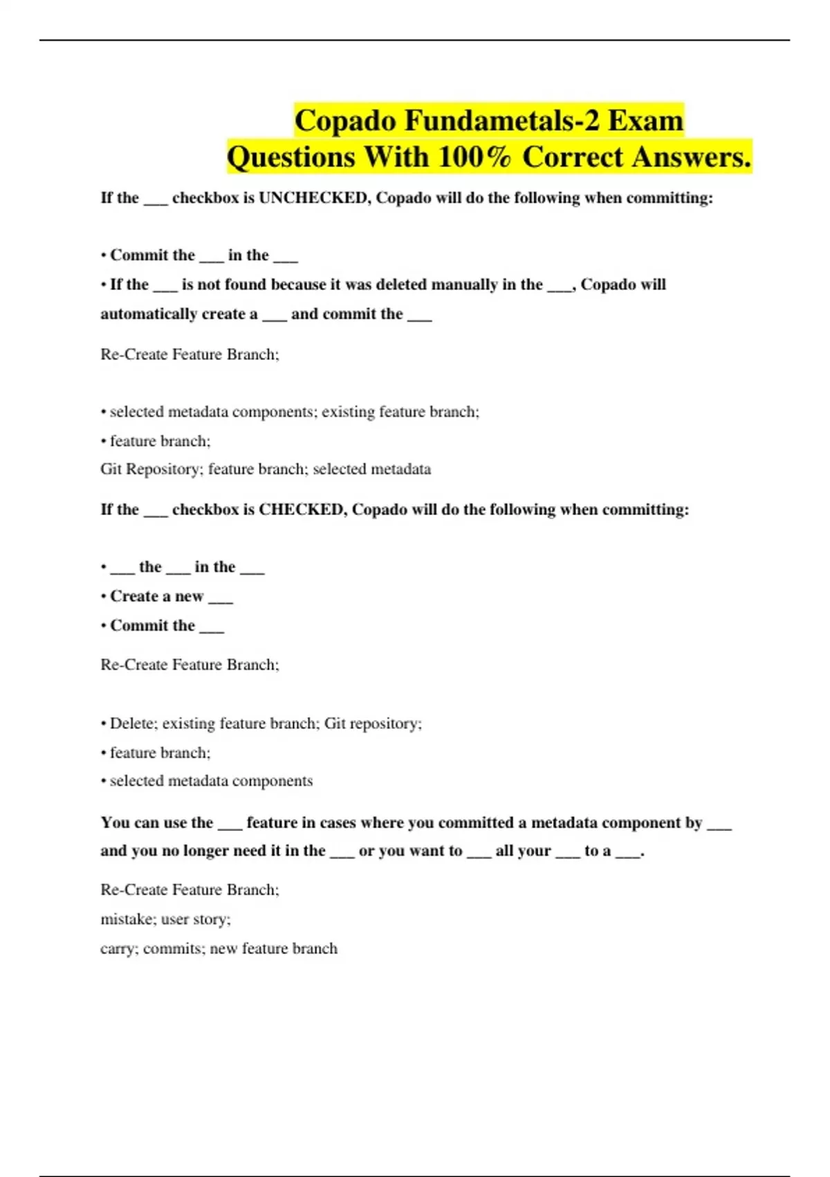 Copado Fundametals-2 Exam Questions With 100% Correct Answers.