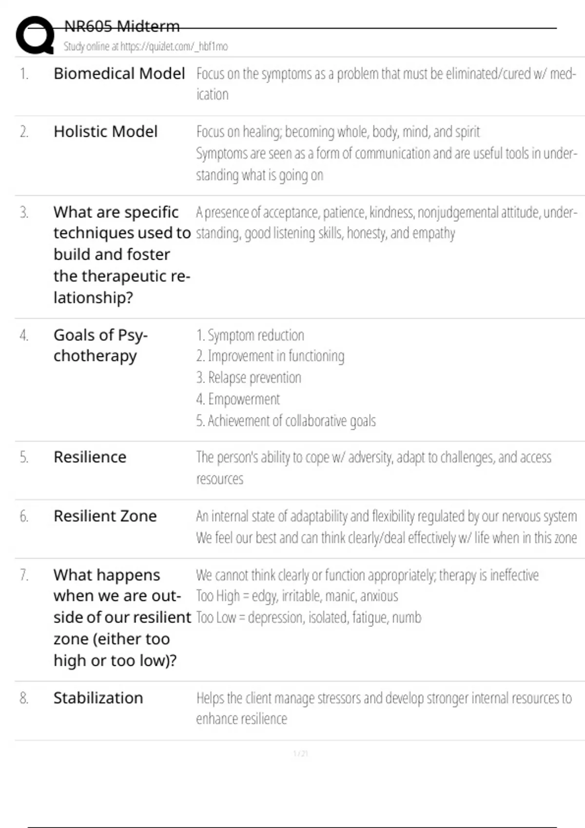 9. What are stabiliza- 1. Therapeutic relationships