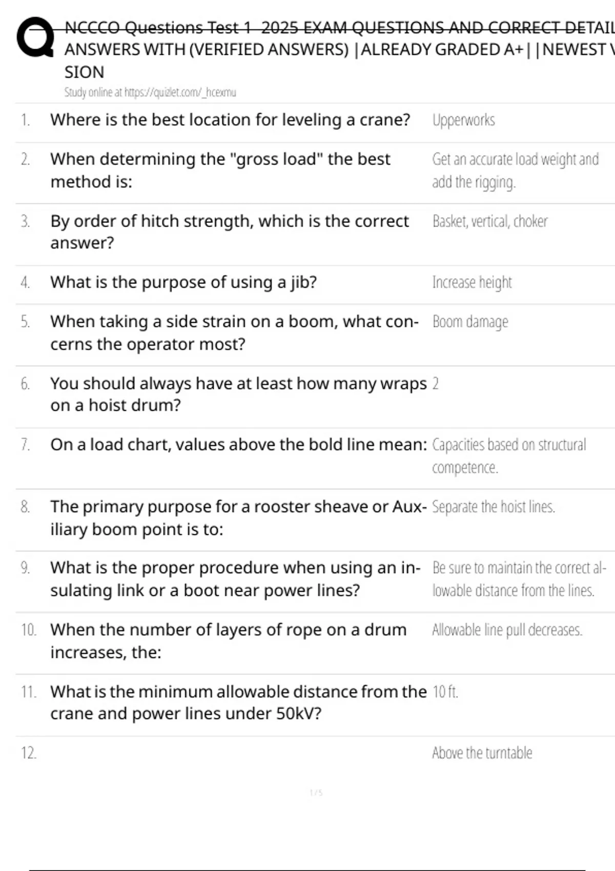 NCCCO Questions Test 1 2025 EXAM QUESTIONS AND CORRECT DETAIL