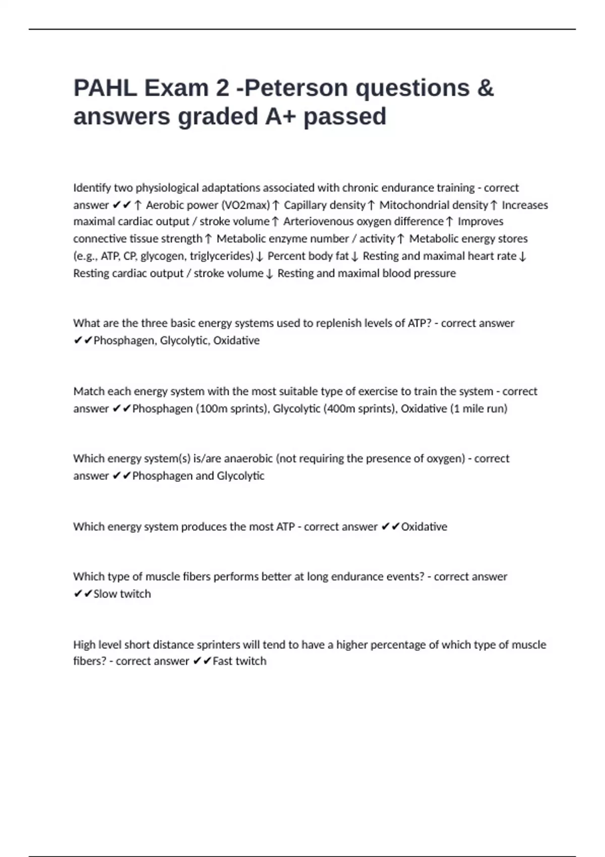 answer ✔✔Phosphagen (100m sprints), Glycolytic (400m sprints), Oxidative (1 mile run)