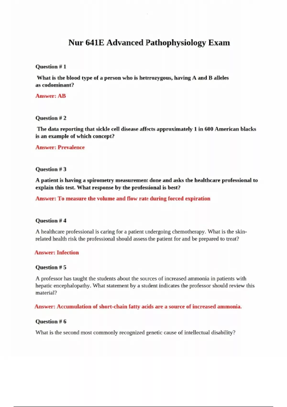 Advanced Pathophysiology – NUR641E Exam Guide with 100% Correct Answers | Verified 2024