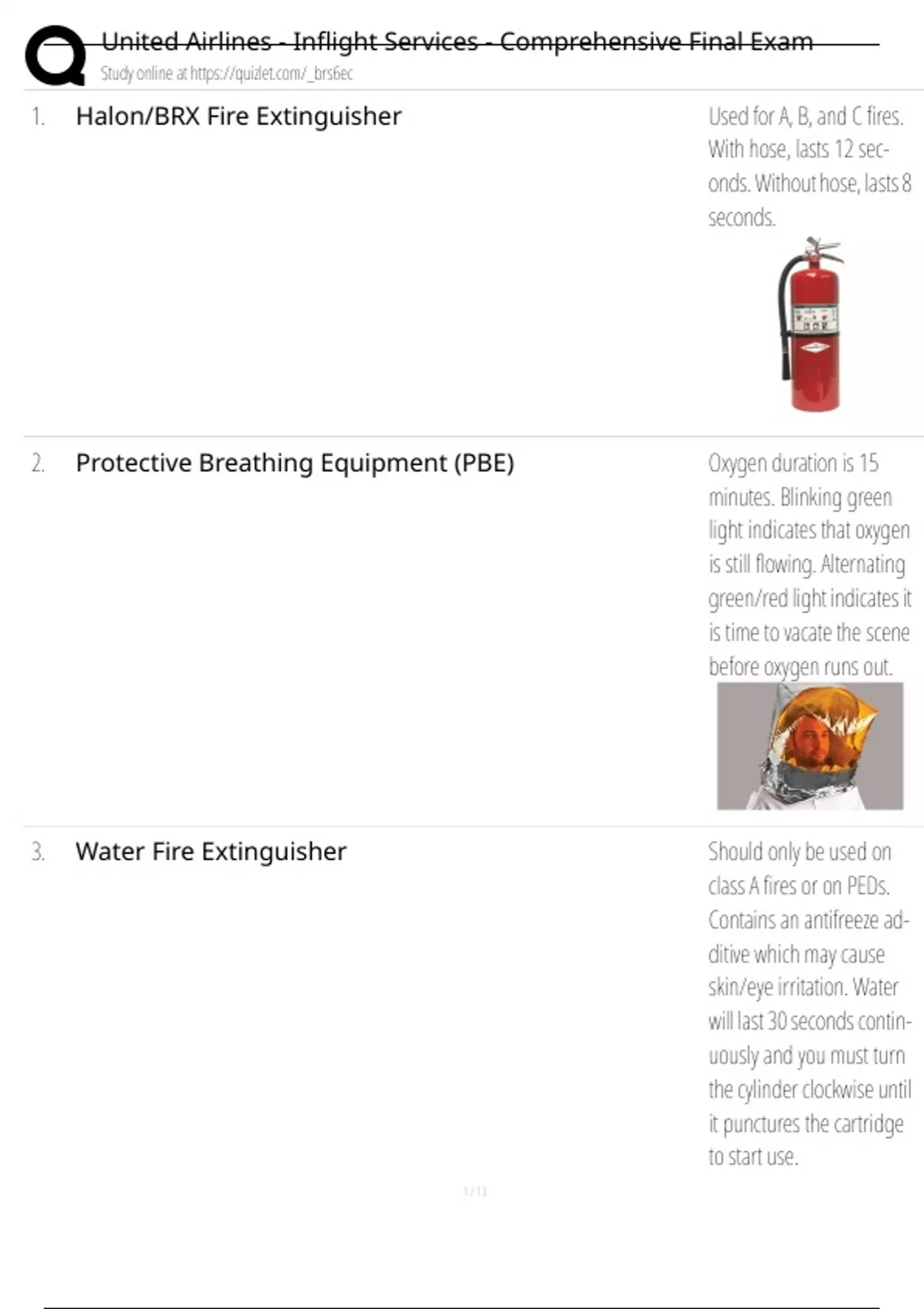 1. Halon/BRX Fire Extinguisher Used for A, B, and C fires.
