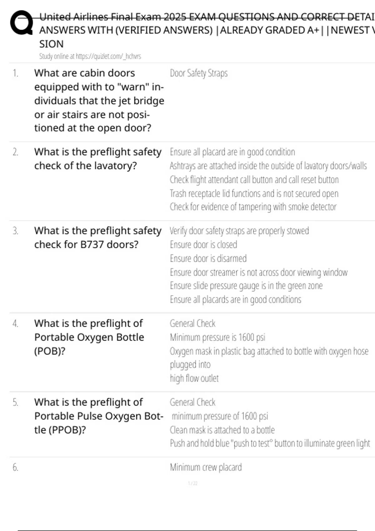 3. What is the preflight safety Verify door safety straps are properly stowed