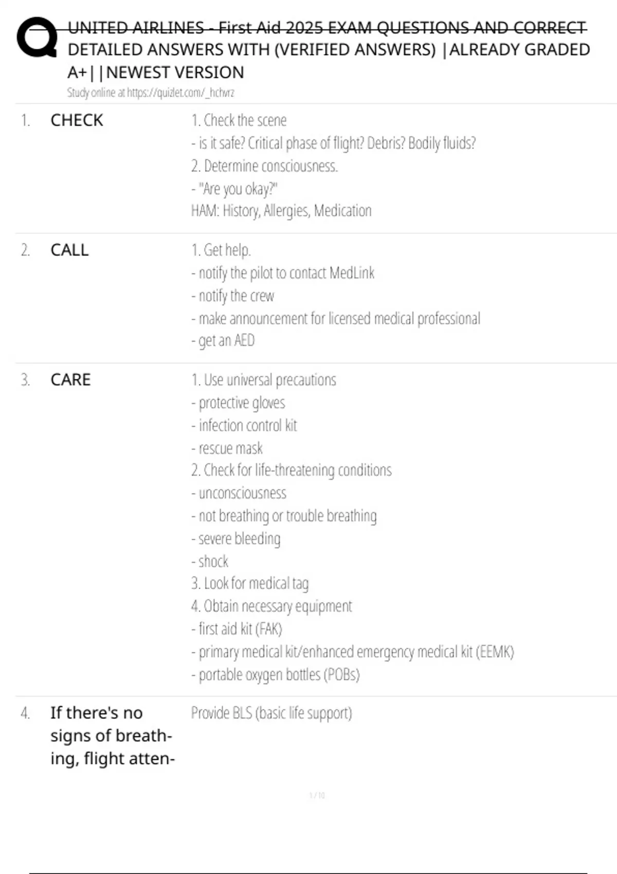 UNITED AIRLINES - First Aid 2025 EXAM QUESTIONS AND CORRECT