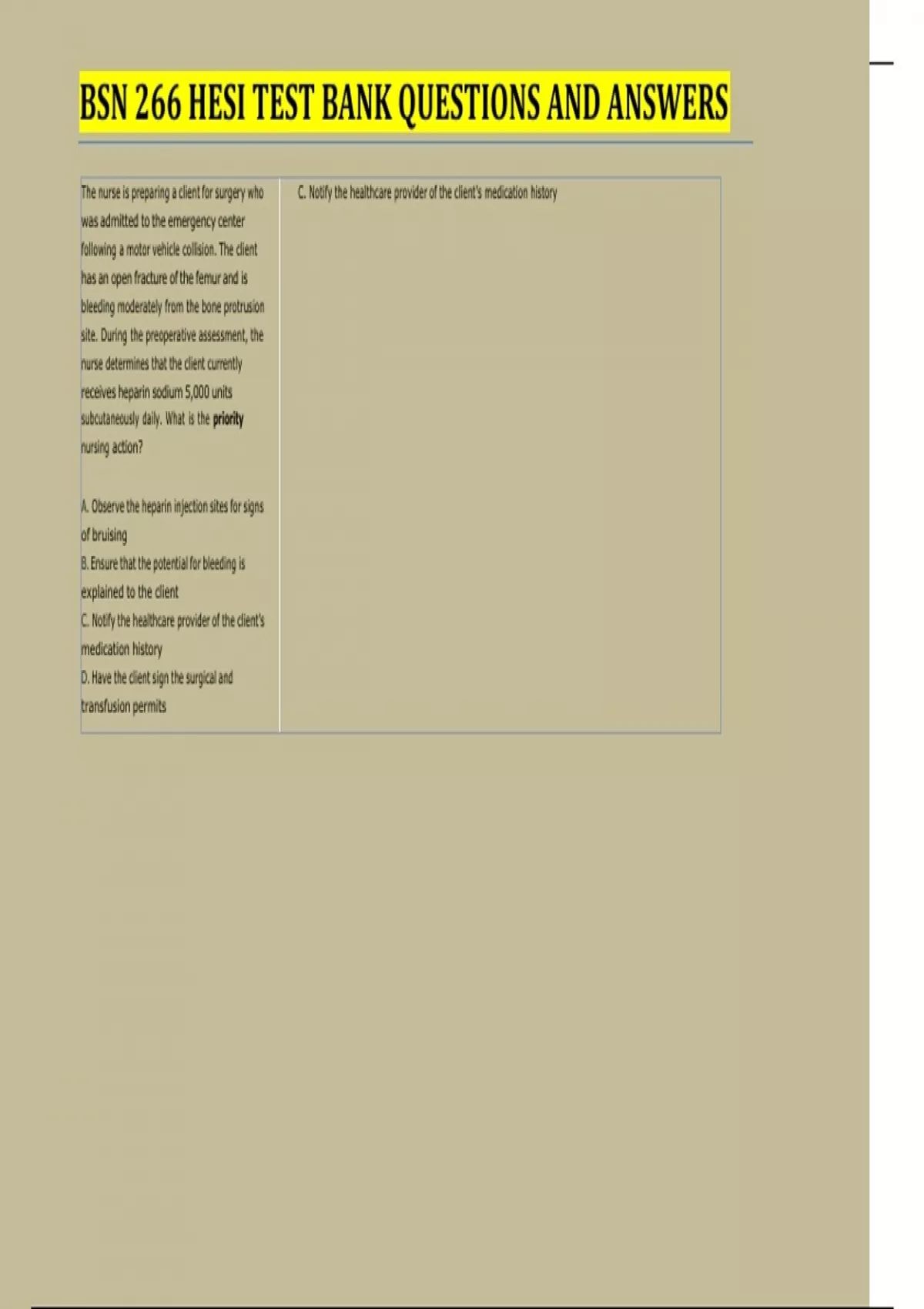 The nurse is preparing a client for surgery who C. Notify the healthcare provider of the client's medication history