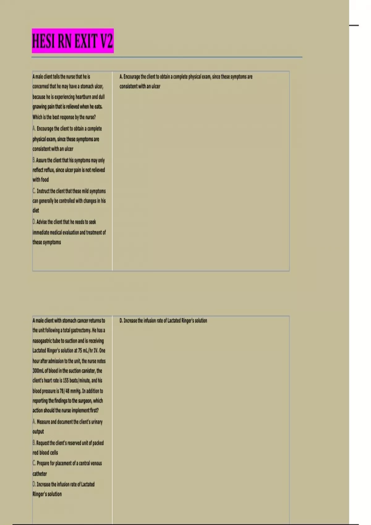 A male client with stomach cancer returns to D. Increase the infusion rate of Lactated Ringer's solution