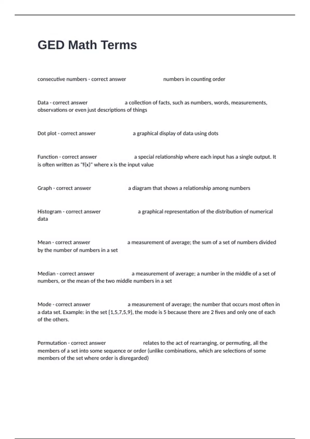 GED Math Terms Advanced Test Questions And Correct Detailed Answers.