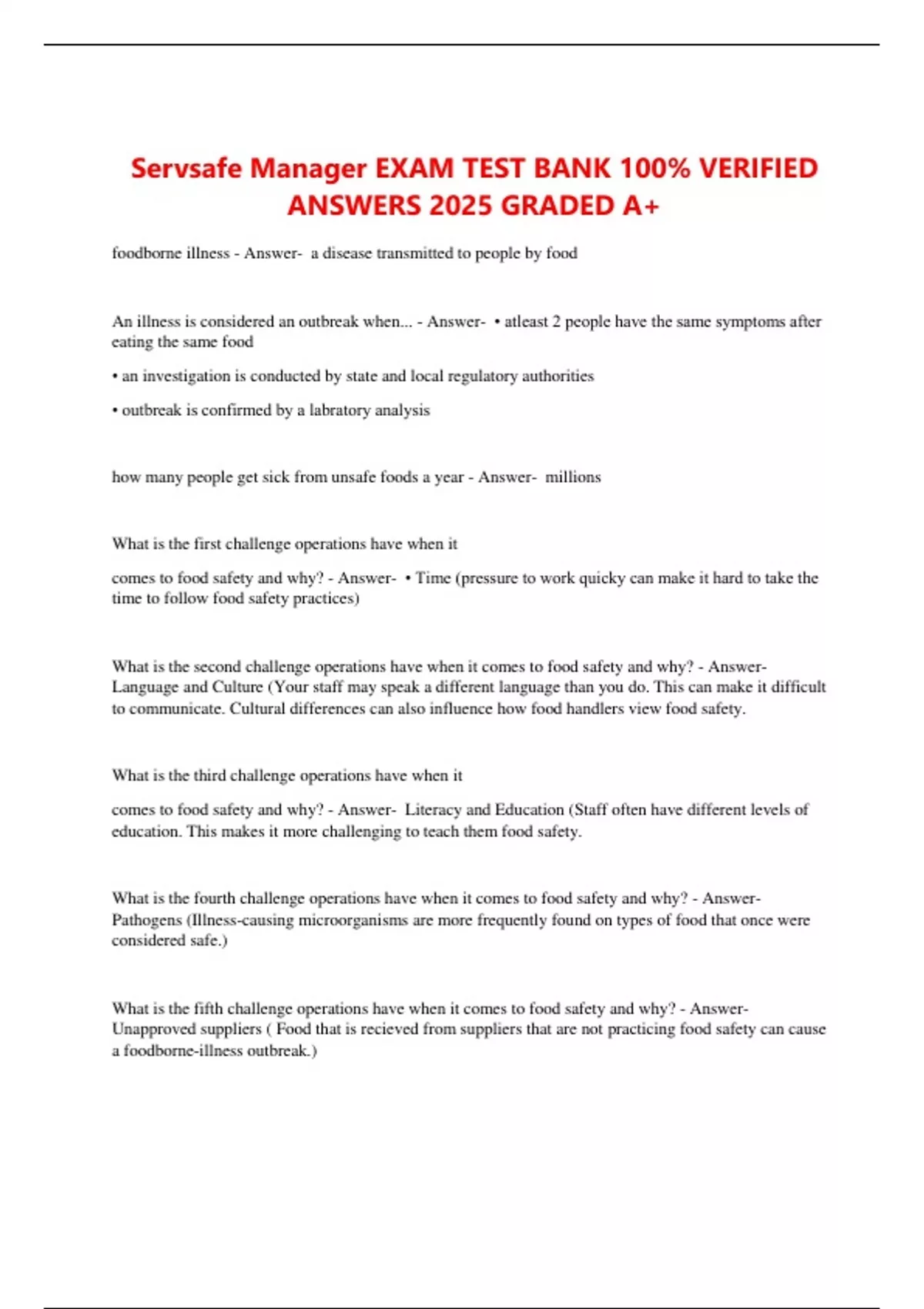 Servsafe Manager EXAM TEST BANK 100% VERIFIED ANSWERS 2025 GRADED A+