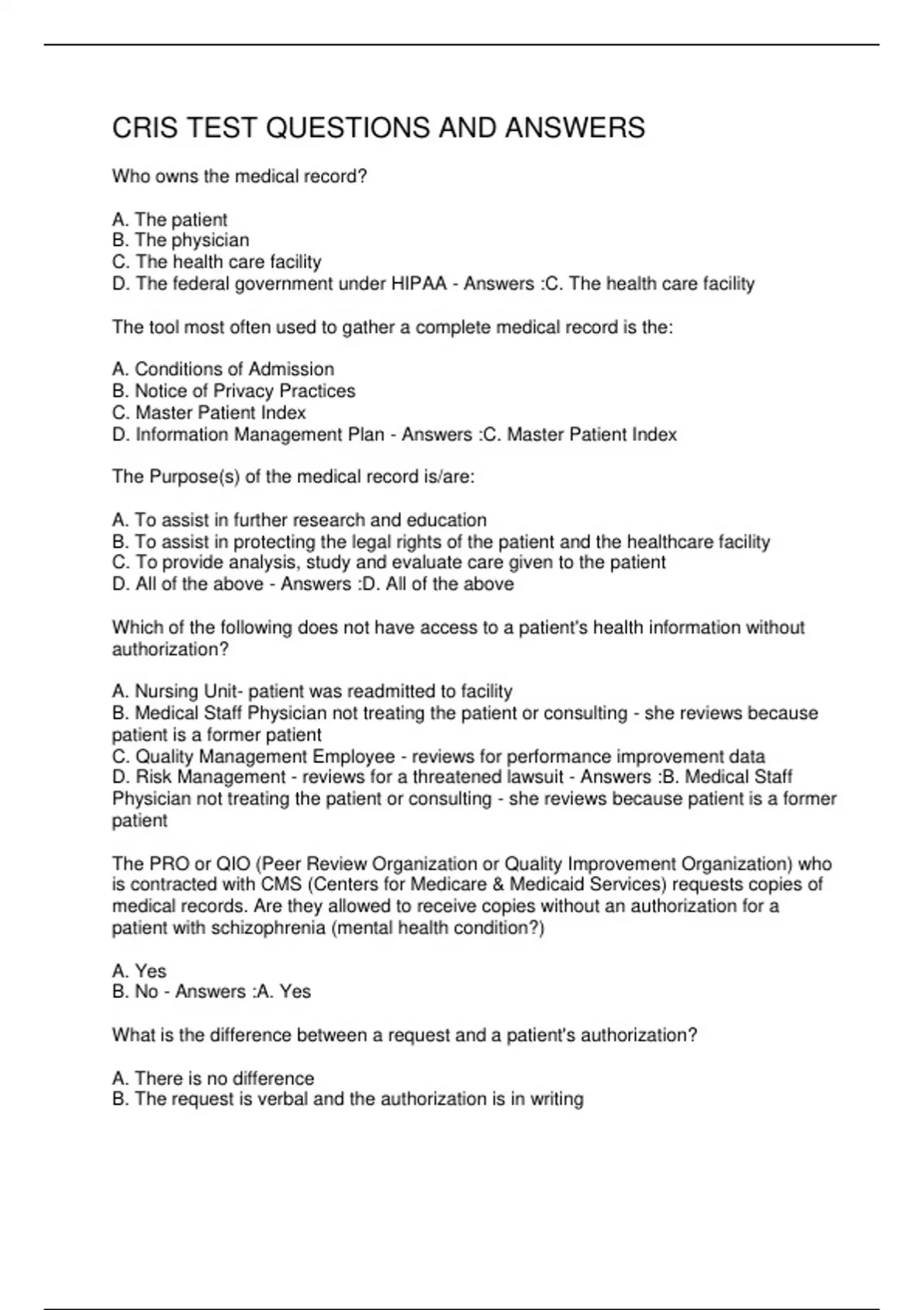 CRIS TEST QUESTIONS AND ANSWERS