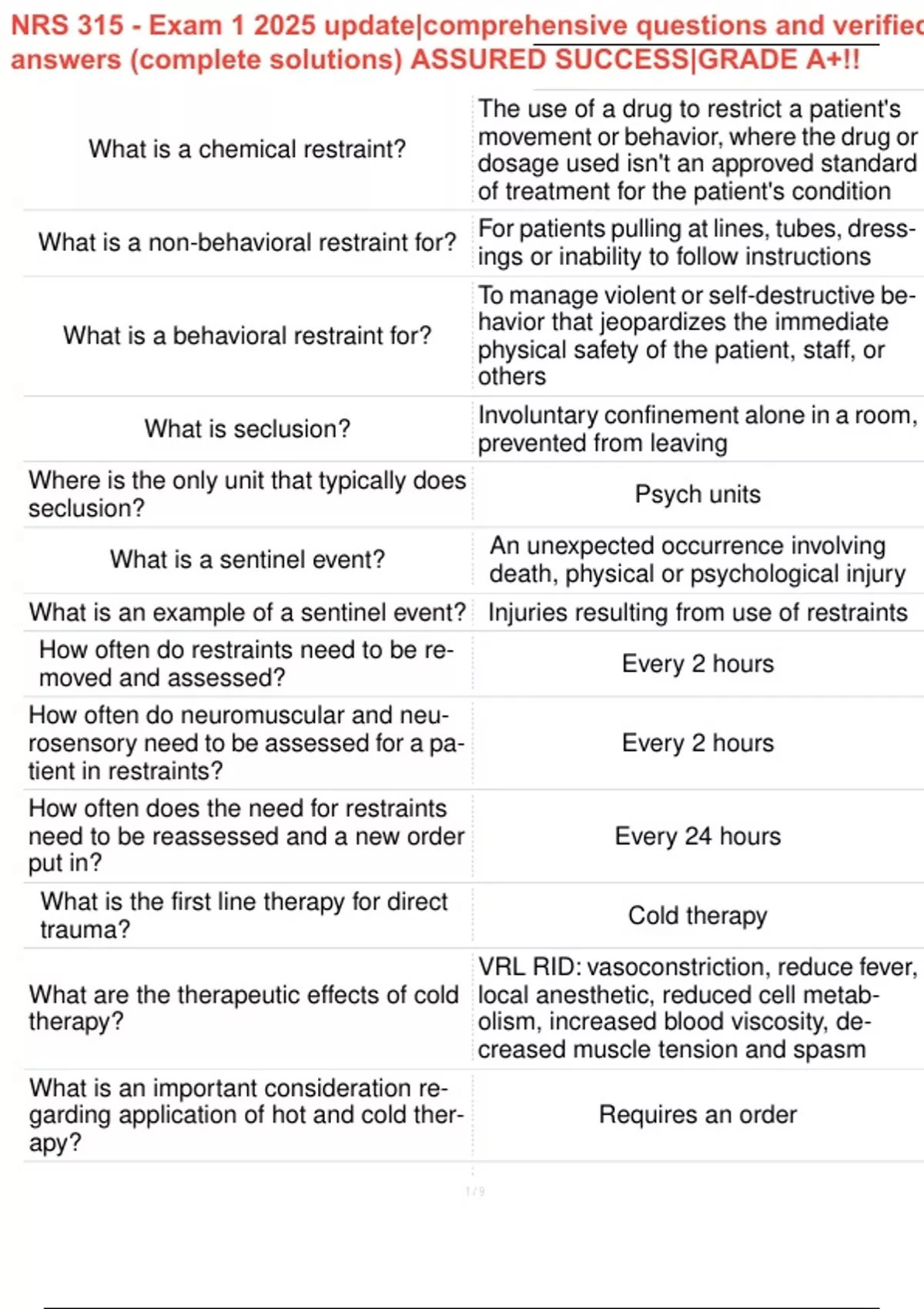 NRS 315 - Exam 1 2025 update|comprehensive questions and verified
