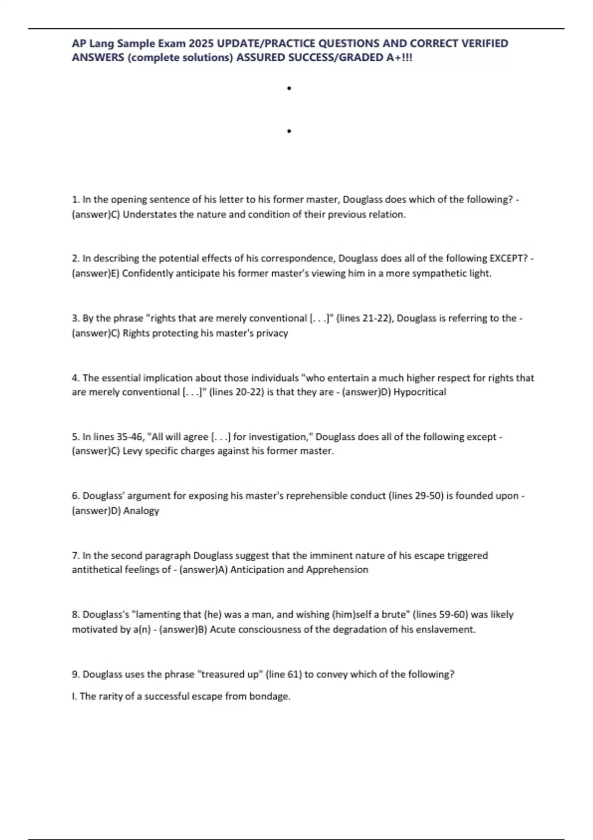 AP Lang Sample Exam 2025 UPDATE/PRACTICE QUESTIONS AND CORRECT VERIFIED
