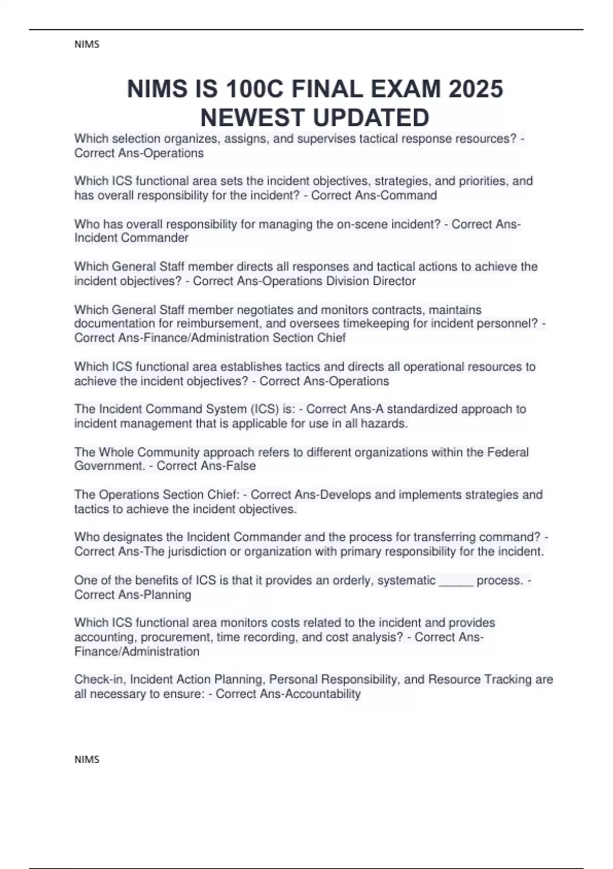 NIMS IS 100C FINAL EXAM 2025 NEWEST UPDATED