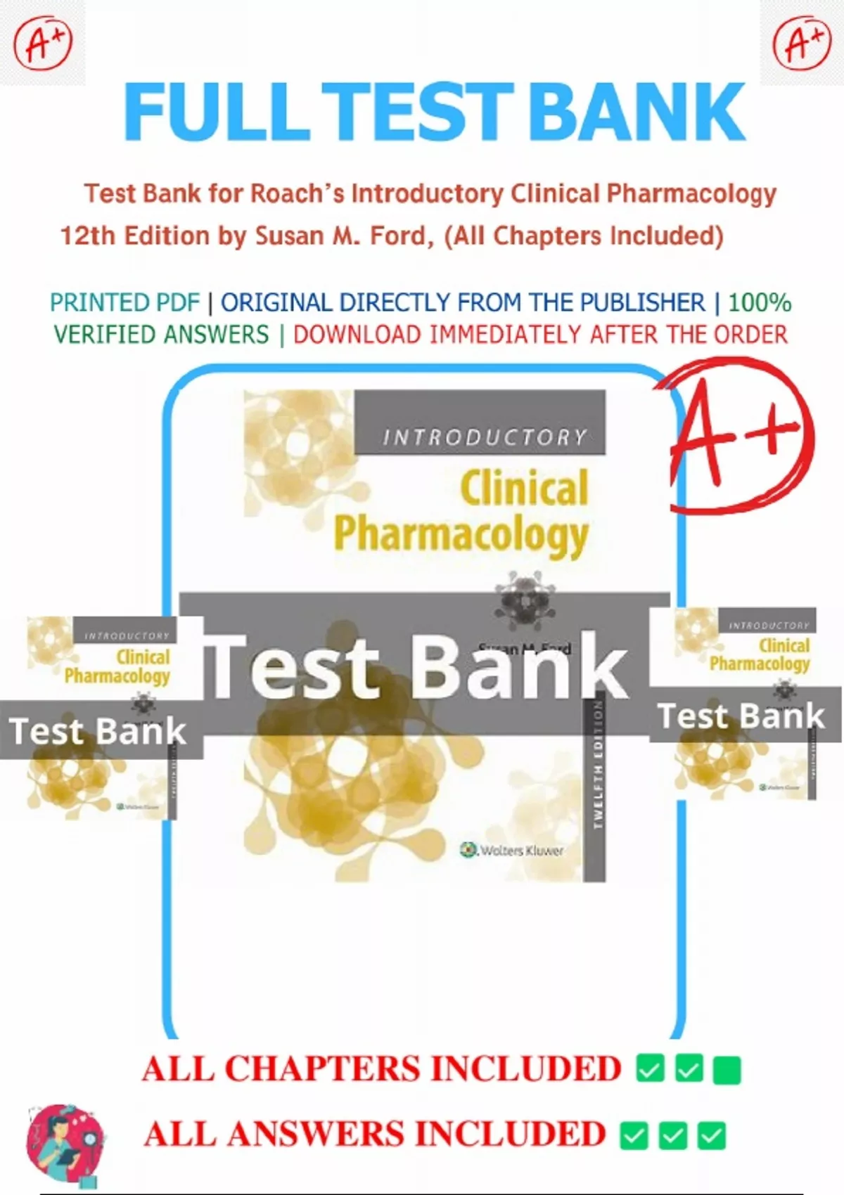 TEST BANK FOR Roach’s Introductory Clinical Pharmacology 12th Edition by Susan M Ford.||ALL CHAPTERS COVERED||LATEST UPDATE.