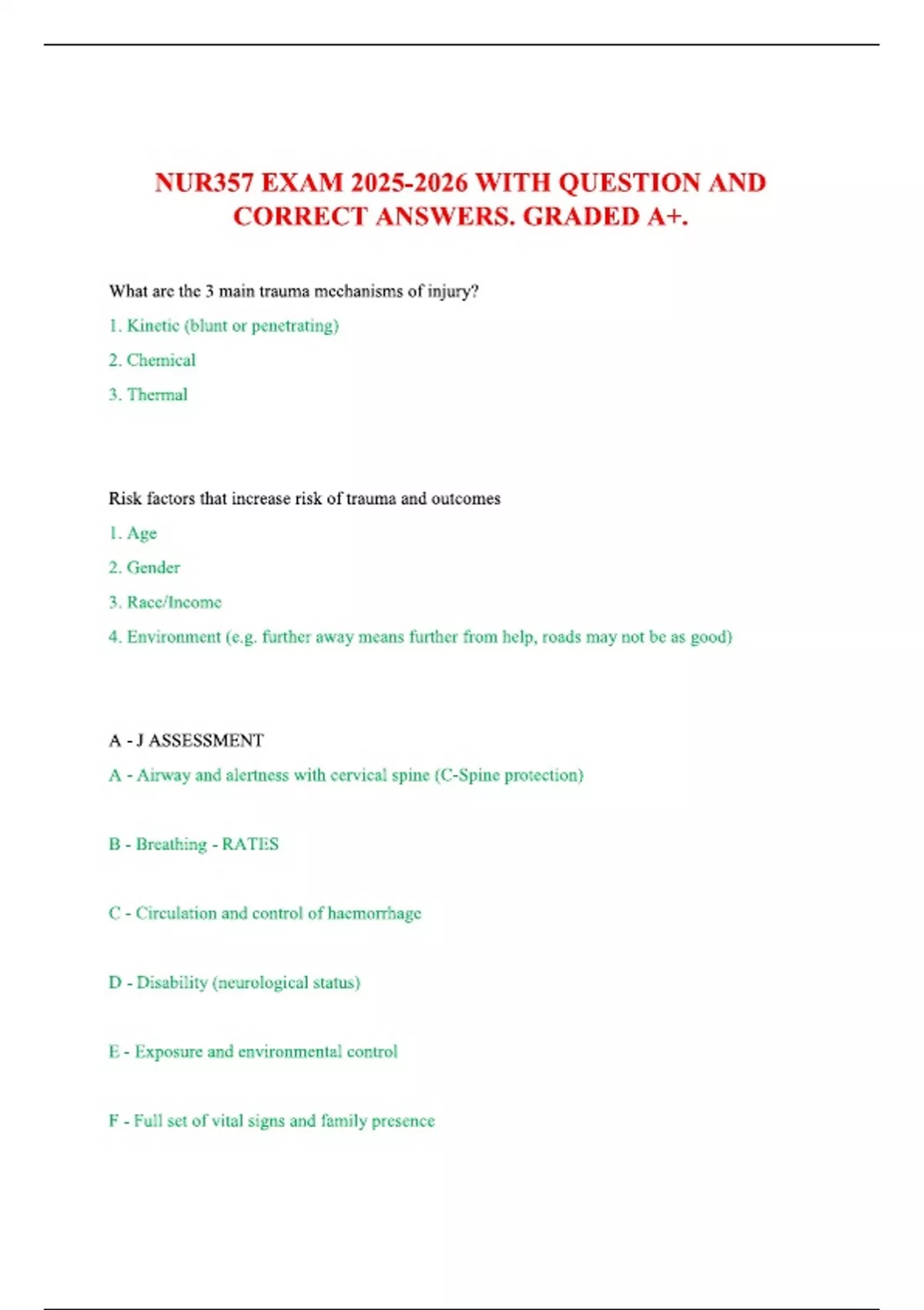 NUR357 EXAM WITH QUESTION AND CORRECT ANSWERS. GRADED A+.