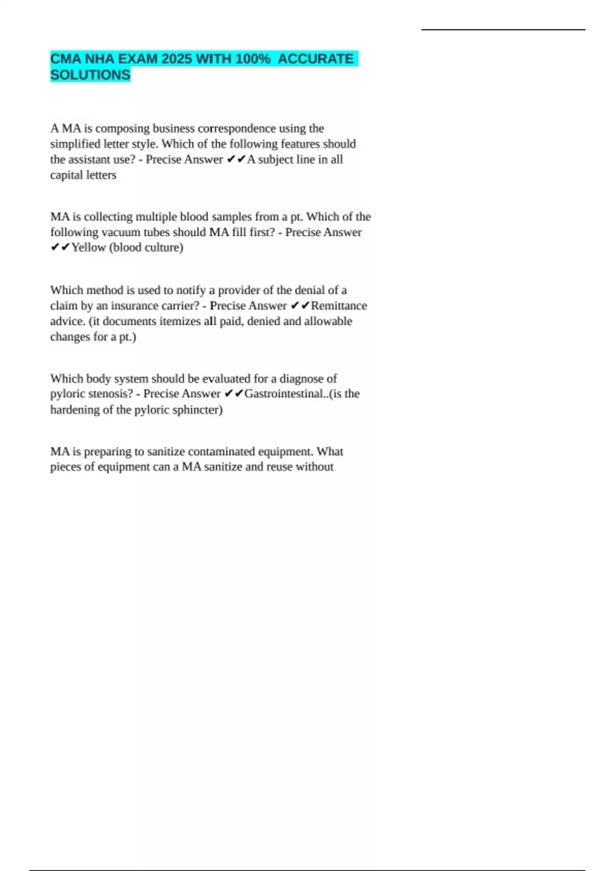 CMA NHA EXAM 2025 WITH 100% ACCURATE SOLUTIONS