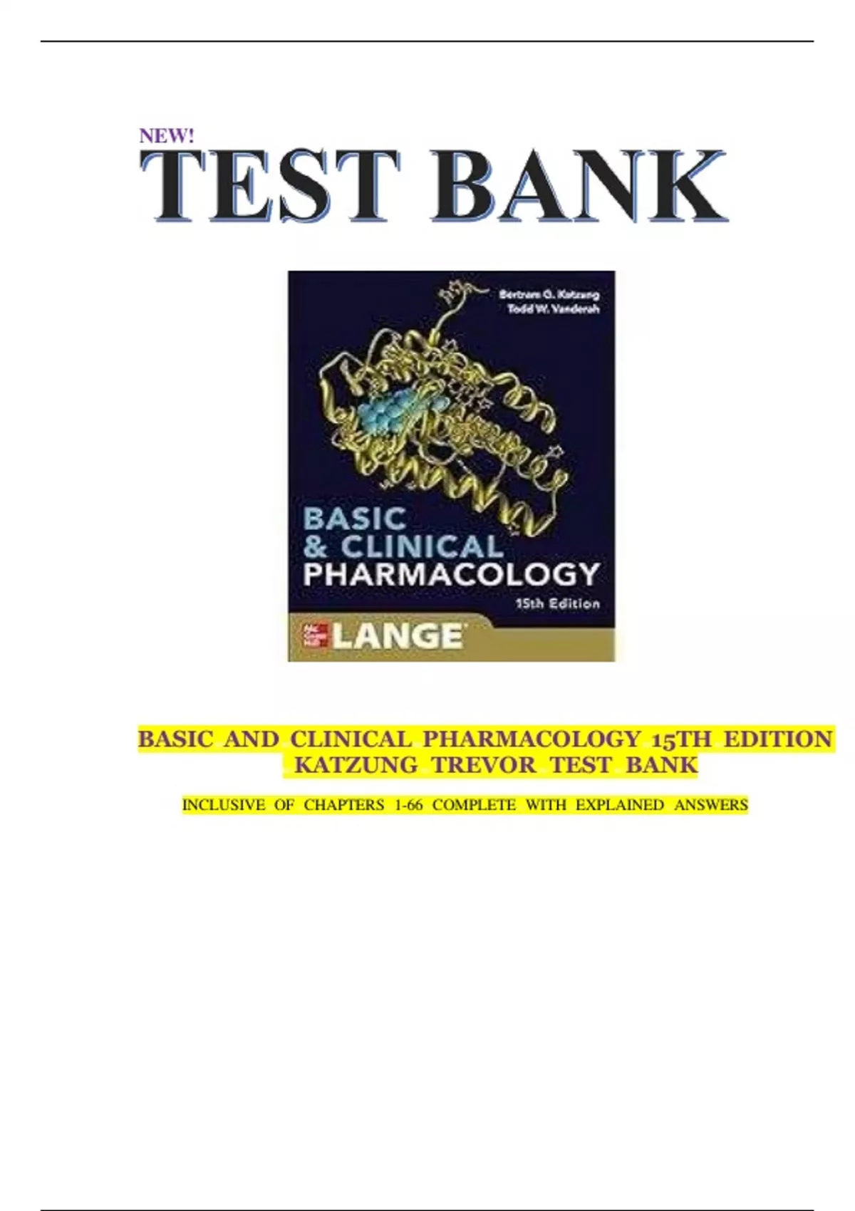 TEST BANK For Basic and Clinical Pharmacology, 15th Edition by Bertram G. Katzung,ISBN; 9781260452310 Verified Chapters 1 - 66 Fully Covered,Complete Guide A+||NEWEST VERSION||.