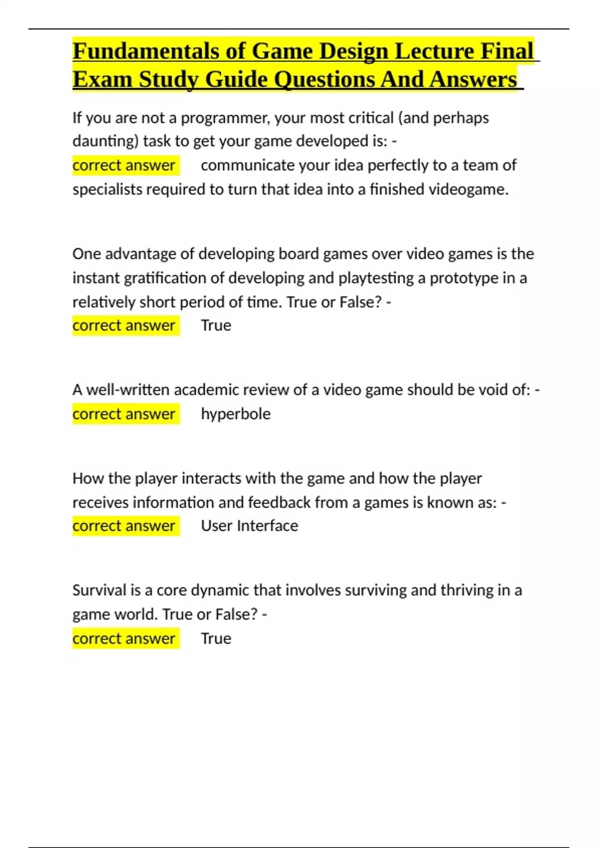 Fundamentals of Game Design Lecture Final Exam Study Guide Questions And A