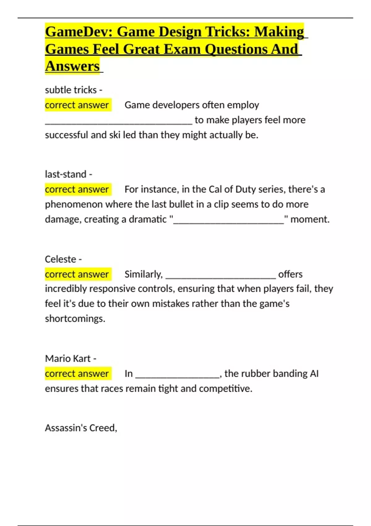 GameDev Game Design Tricks Making Games Feel Great Exam Questions And Answers.docx