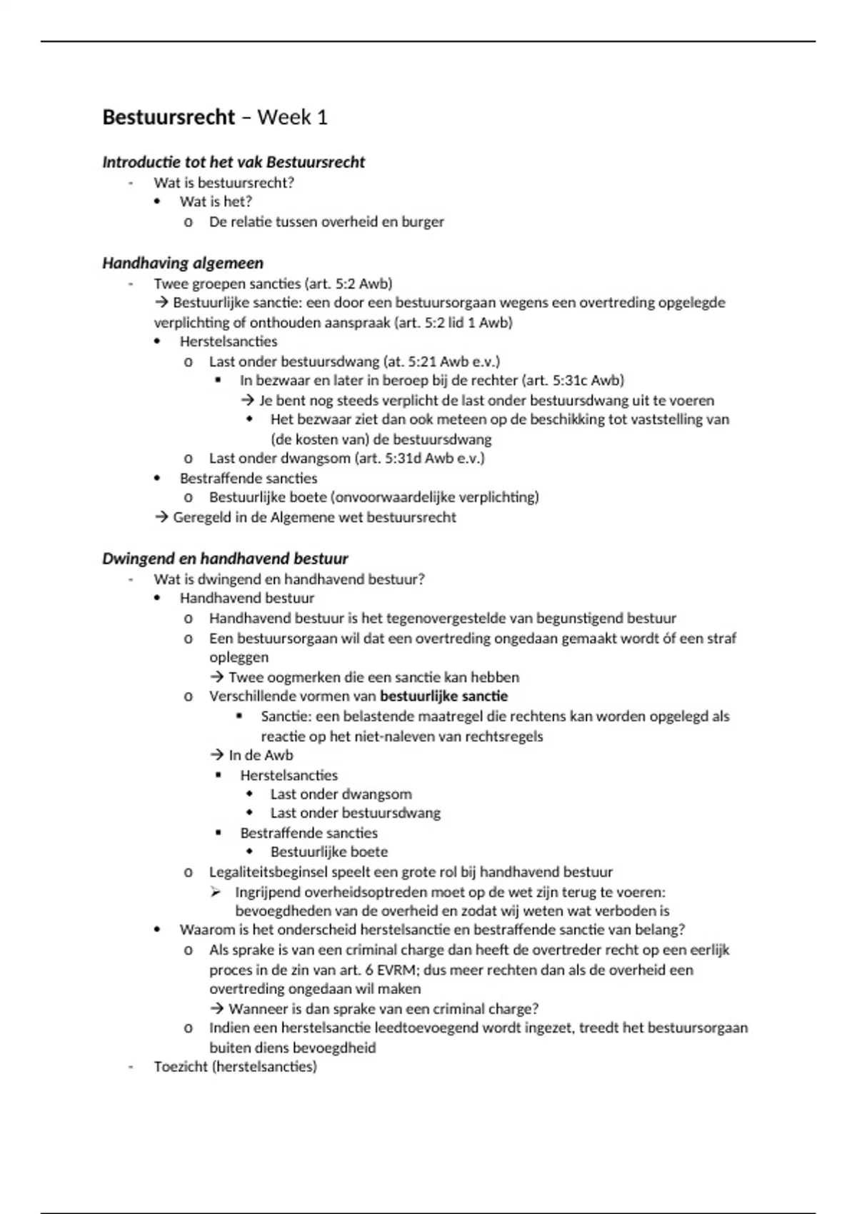Samenvatting literatuur, hoorcolleges, werkgroepen en stappenplannen Bestuursrecht