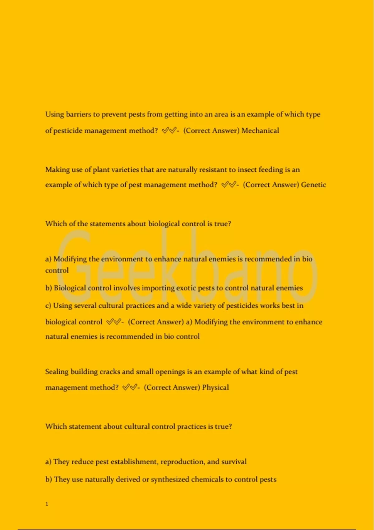 of pesticide management method? ✅✅- (Correct Answer) Mechanical