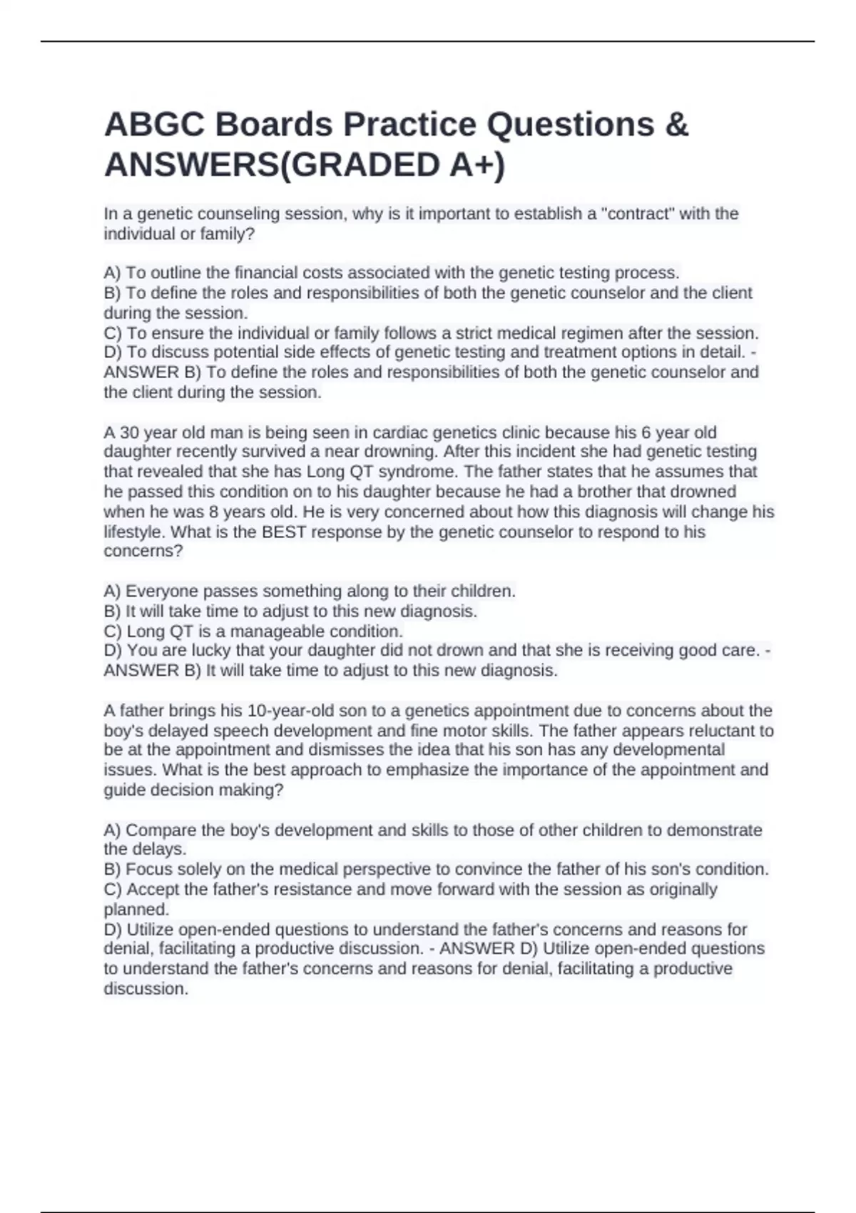 ANSWER B) To define the roles and responsibilities of both the genetic counselor and