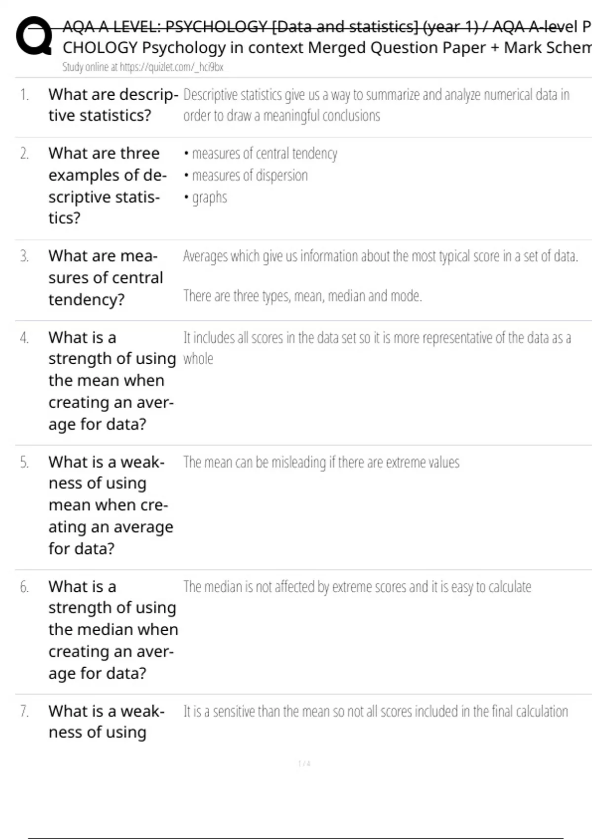 AQA A LEVEL: PSYCHOLOGY [Data and statistics] (year 1) / AQA A-level P