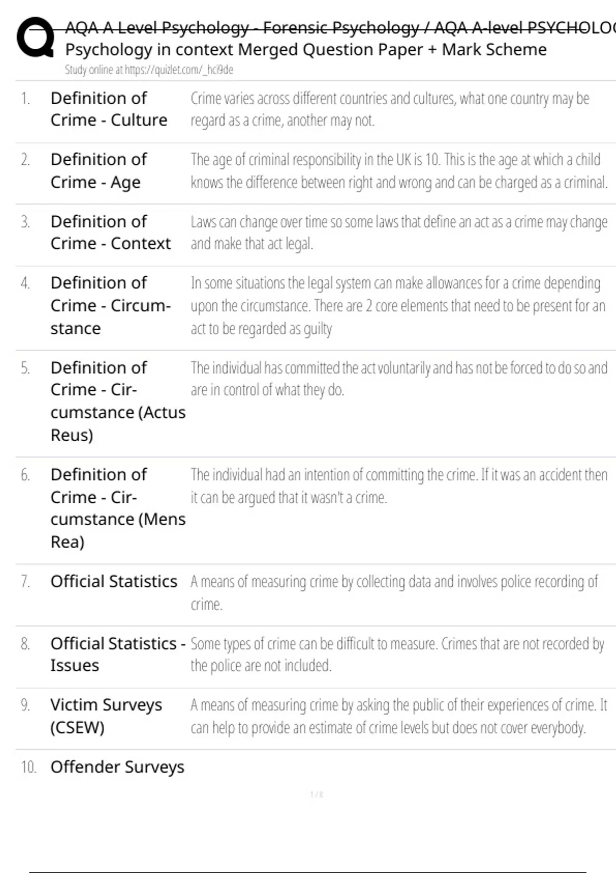 , AQA A Level Psychology - Forensic Psychology / AQA A-level PSYCHOLOG