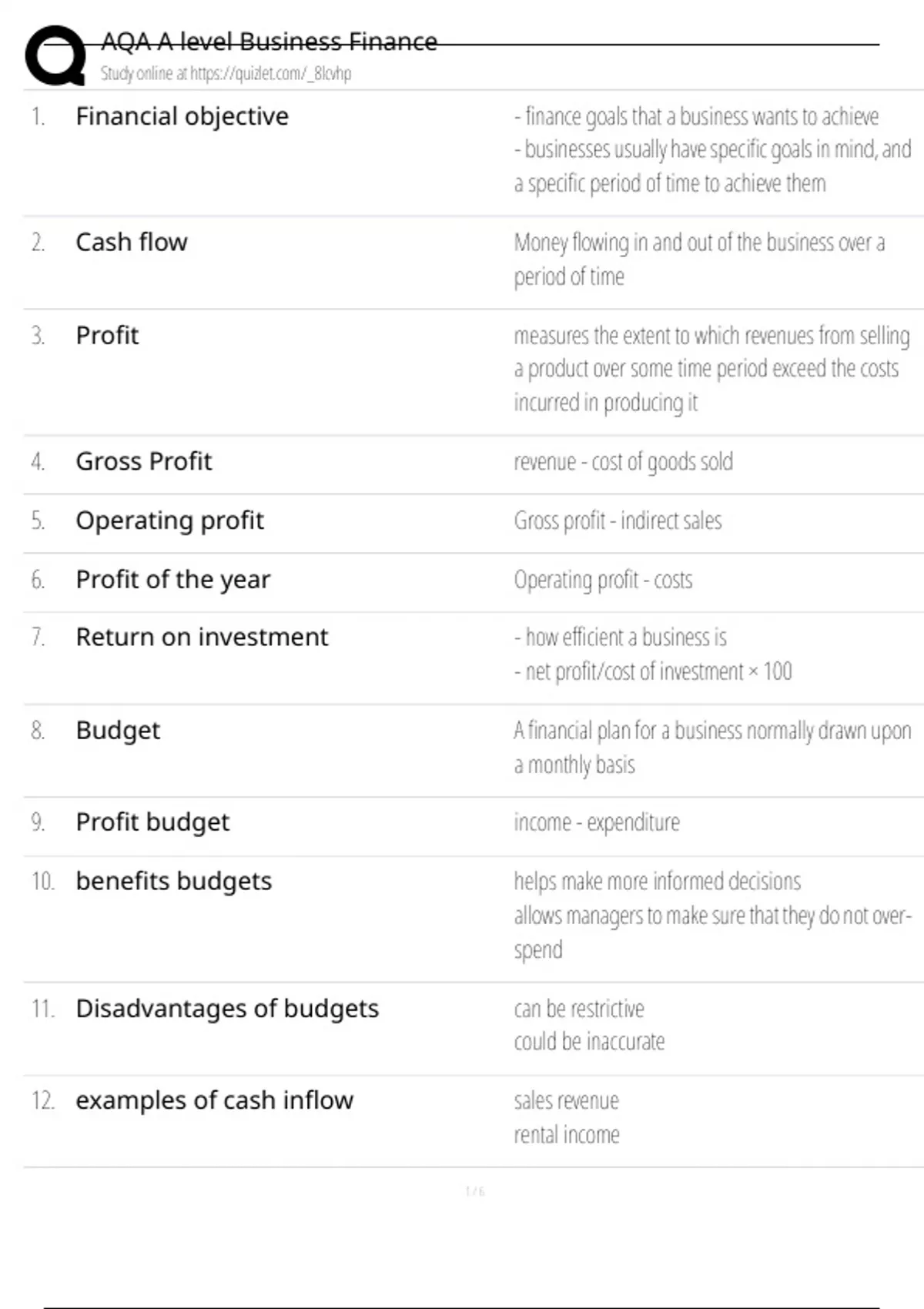 AQA A level Business Finance