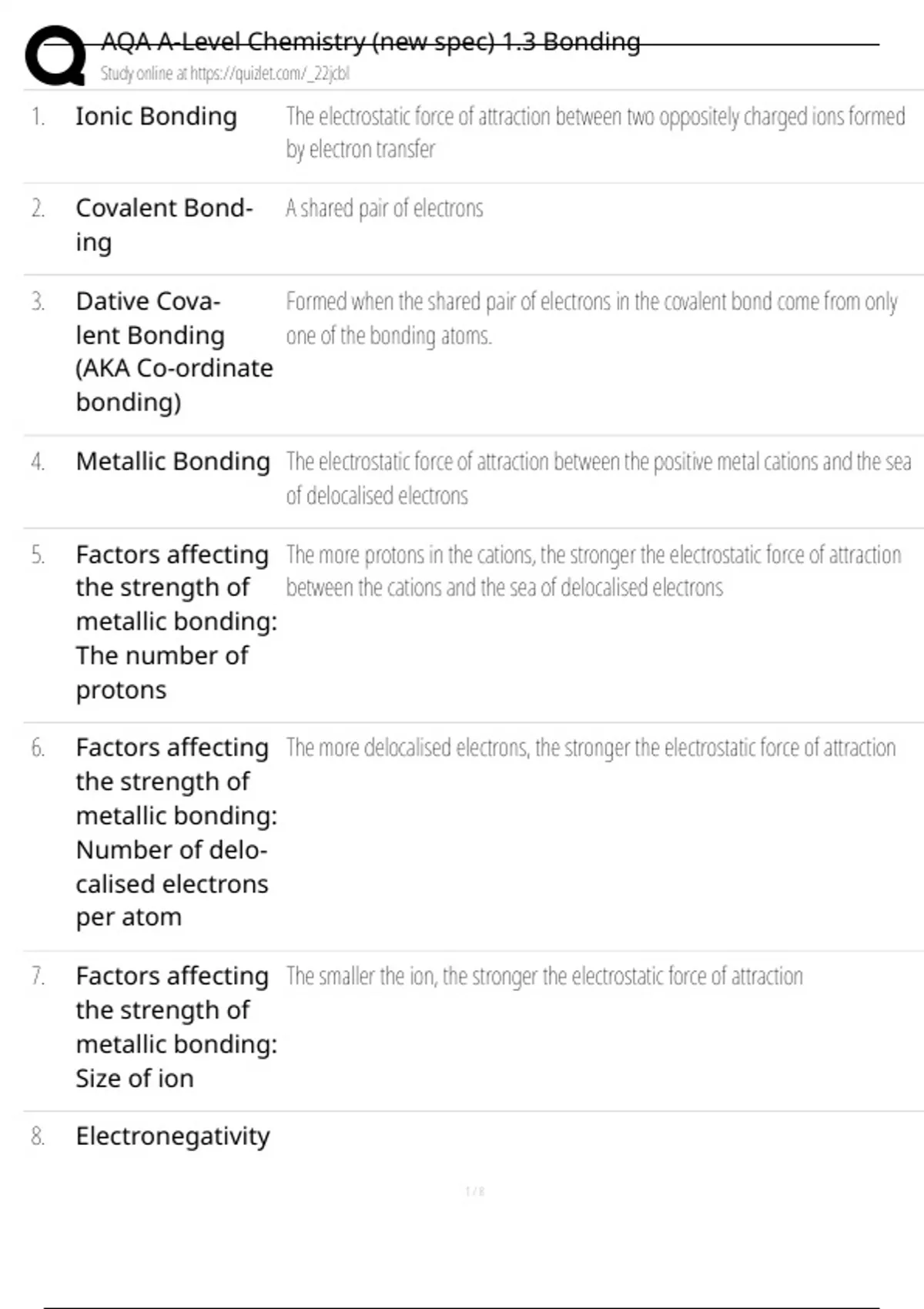 , AQA A-Level Chemistry (new spec) 1.3 Bonding