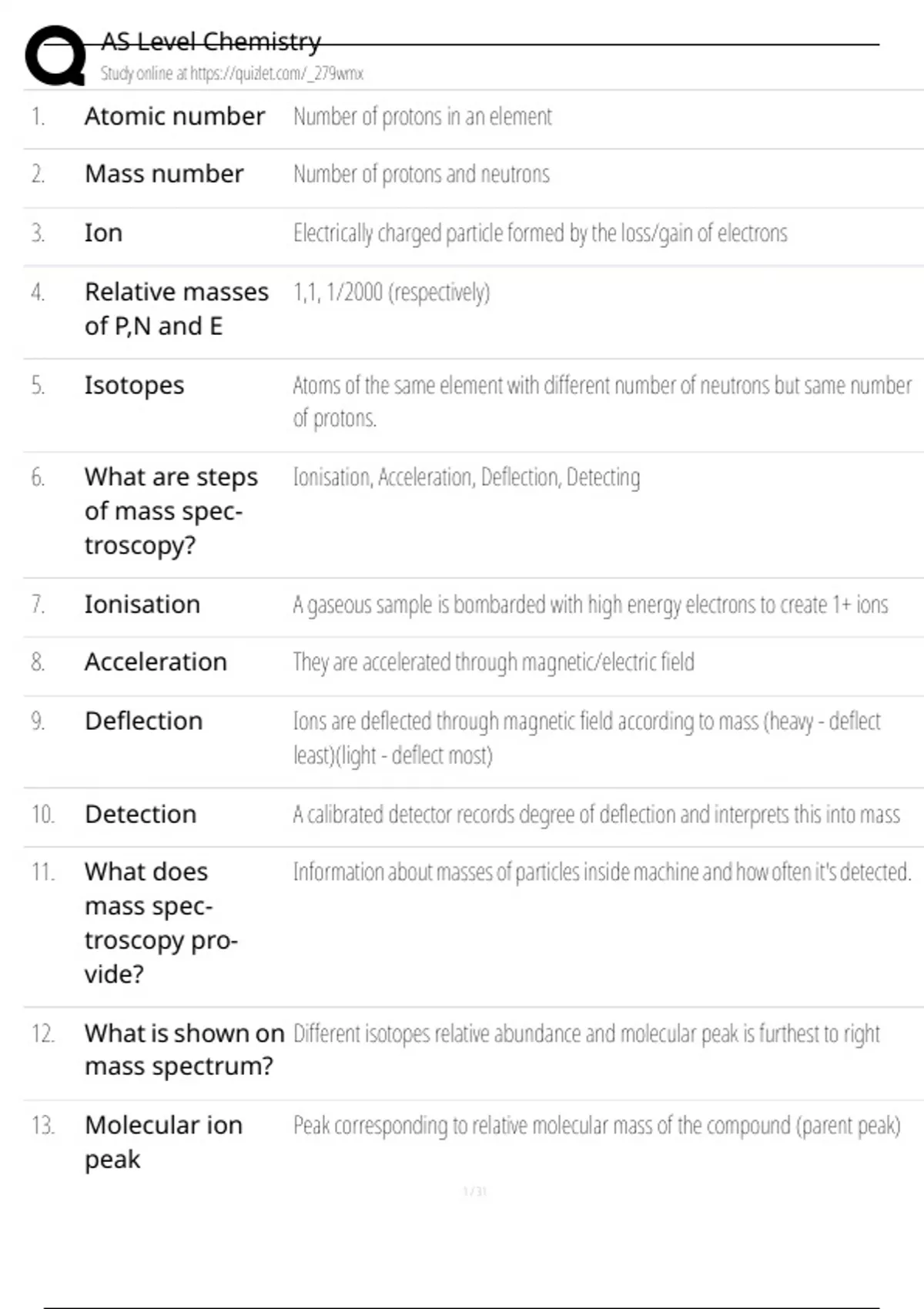 28. Relative Isotopic The mass of an isotope of an element compared to 1/12 of the mass of carbon