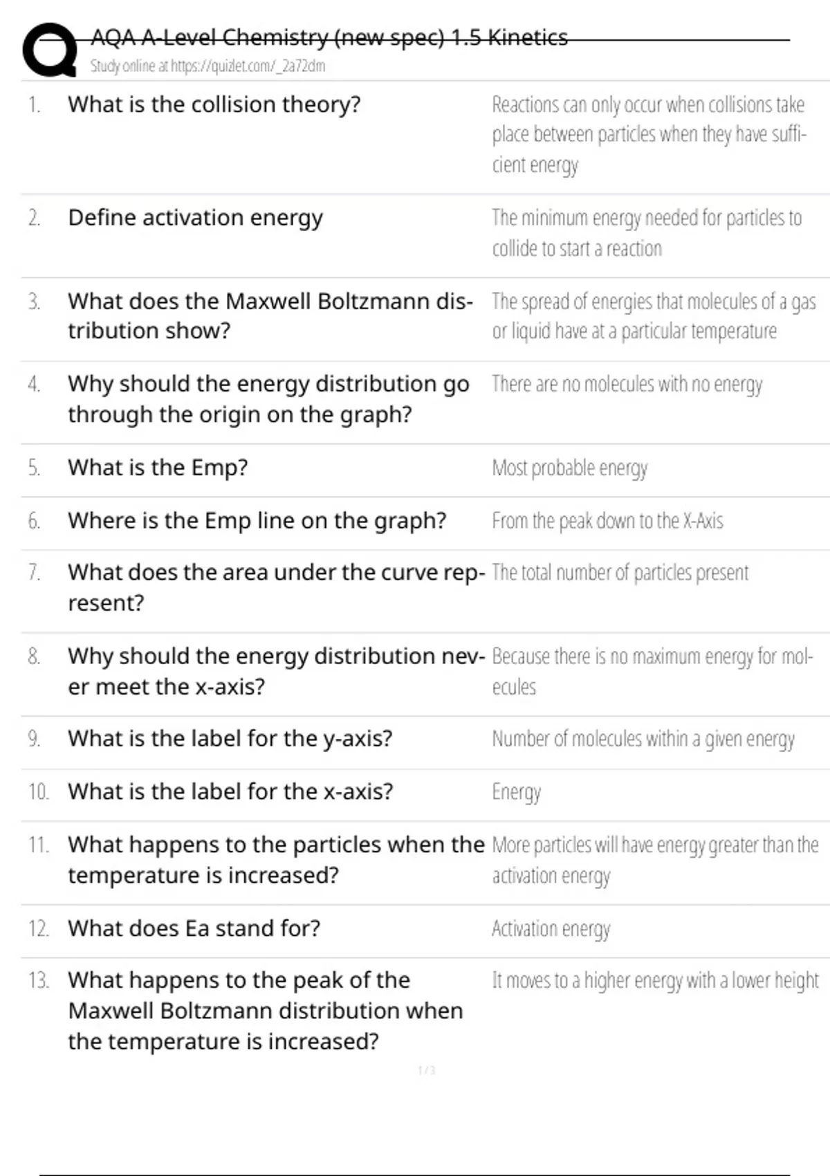 AQA A-Level Chemistry 1.5 Kinetics Stud