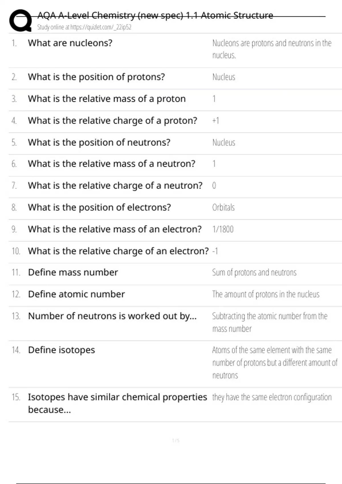 AQA A-Level Chemistry 1.1 Atomic Struct