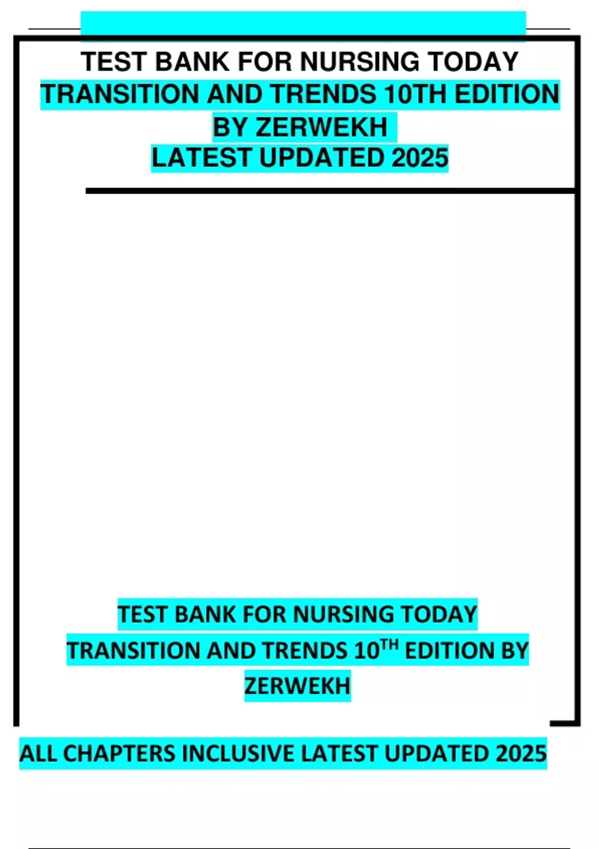 TEST BANK FOR NURSING TODAY TRANSITION AND TRENDS 10TH EDITION BY ZERWEKH LATEST UPDATED 2025