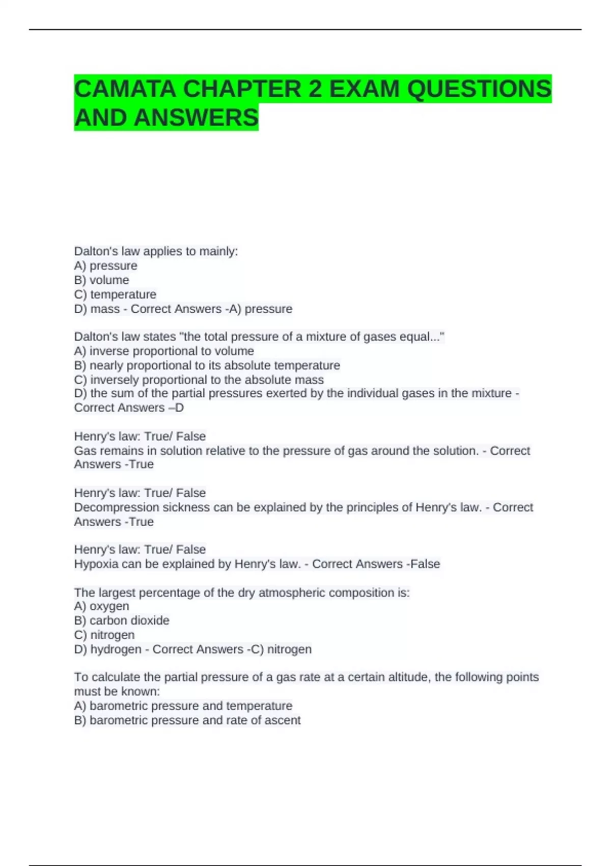 CAMATA CHAPTER 2 EXAM QUESTIONS AND ANSWERS