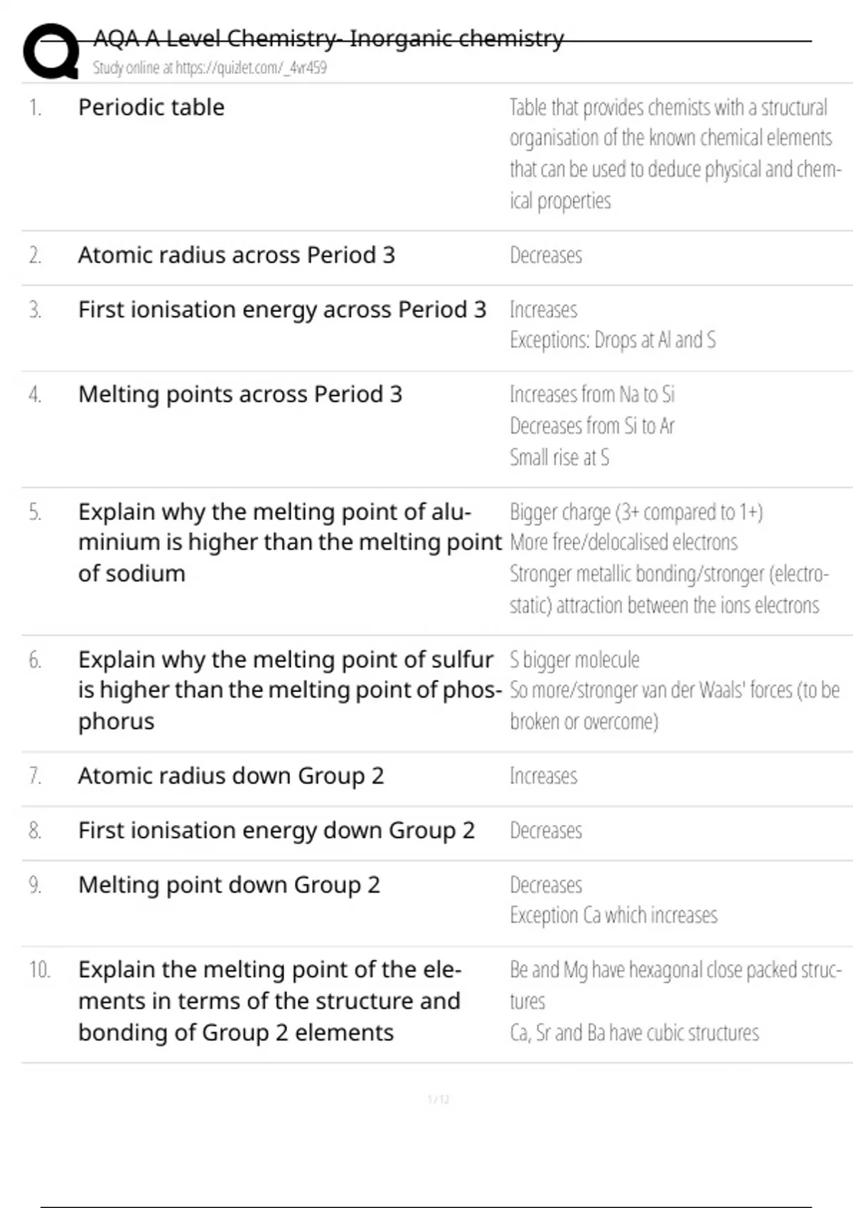 , AQA A Level Chemistry- Inorganic chemistry