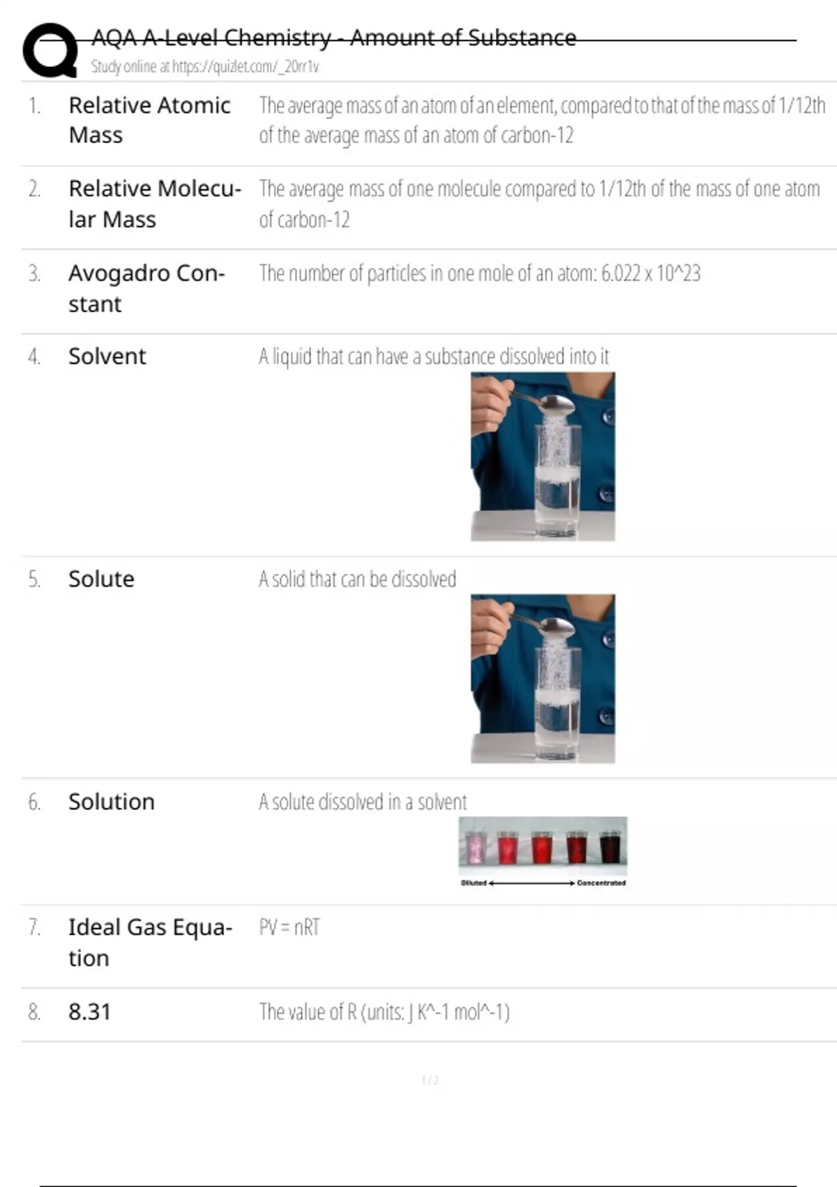 QA A-Level Chemistry - Amount of Substance Study online at https://quizlet.com/_20rr1v 1. Relative Atomic Mass