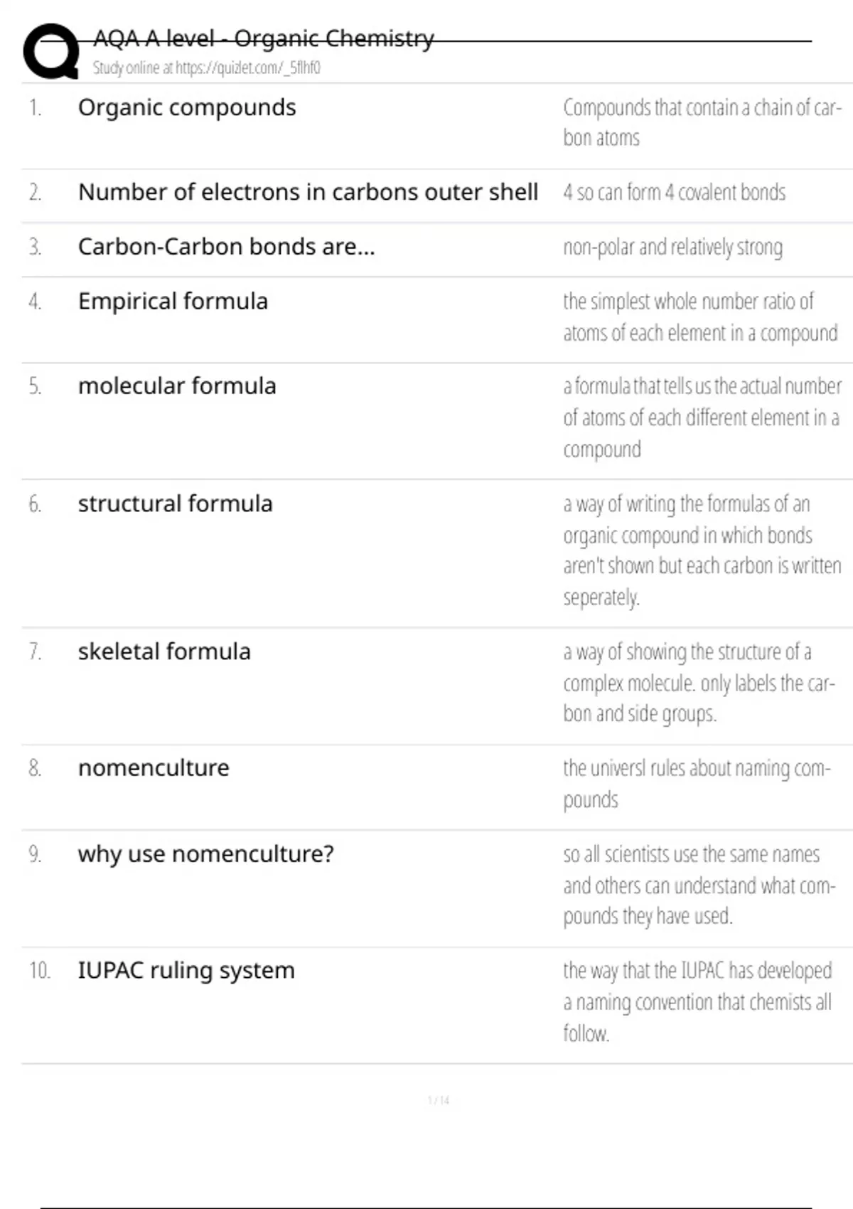 AQA A level - Organic Chemistry Study online at https://quizlet.com/_5flhf0 1.