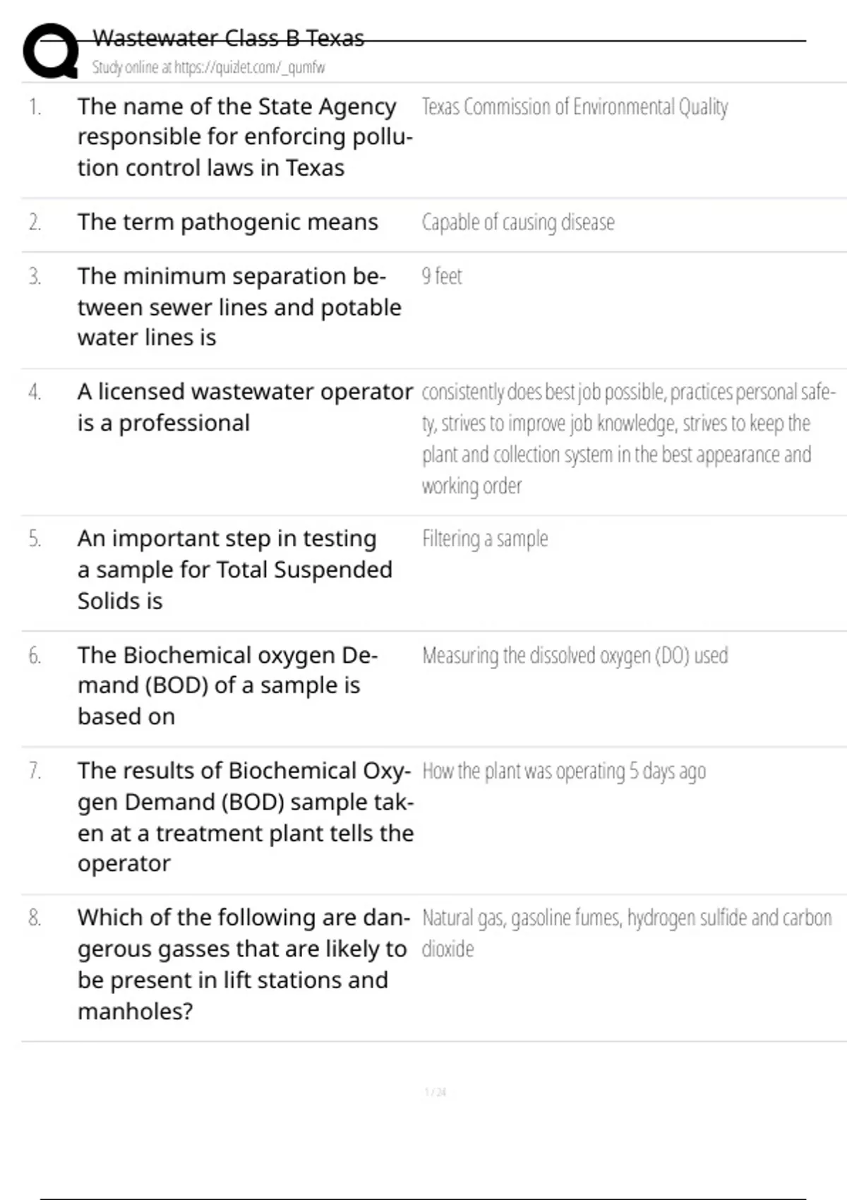 Wastewater Class B Texas Study online at https://quizlet.com/_qumfw