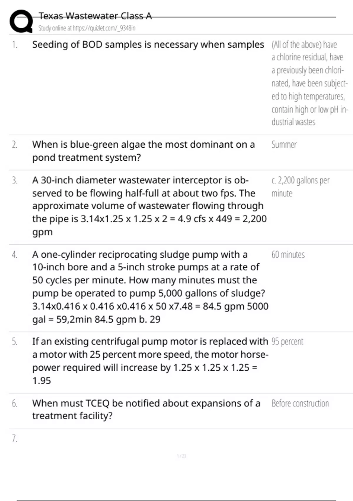 exas Wastewater Class A Study online at https://quizlet.com/_9348in1.