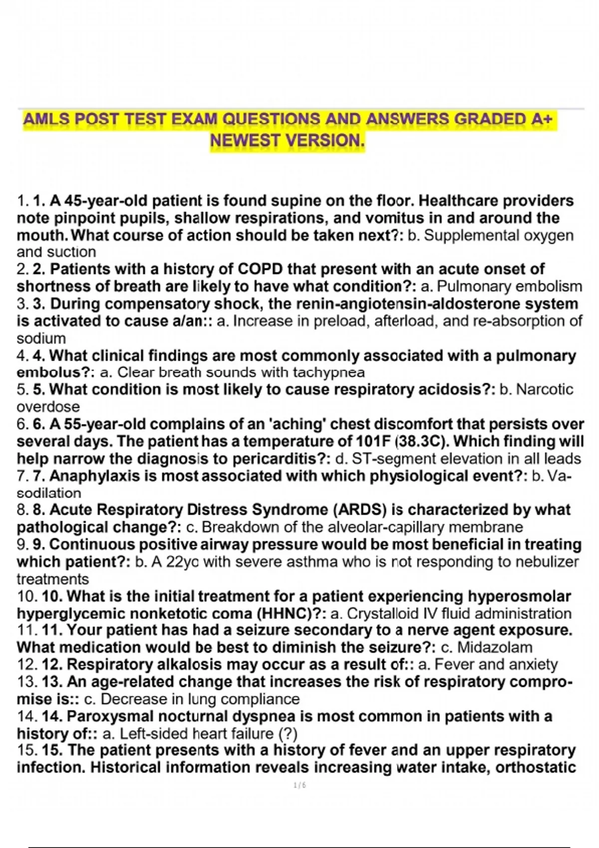 AMLS POST TEST EXAM QUESTIONS AND ANSWERS GRADED A+ NEWEST VERSION. AMLS exam questions AMLS test answers AMLS practice test Advanced Medical Life Support exam AMLS graded questions newest AMLS test version AMLS exam preparation AMLS study guide AMLS quiz questions 2025 AMLS test questions AMLS certification exam AMLS test bank AMLS sample questions AMLS exam review AMLS pass guarantee AMLS exam tips AMLS mock test AMLS exam questions PDF AMLS practice exam online AMLS official test questions latest AMLS exam version AMLS exam study material AMLS test simulation AMLS questions and answers AMLS course exam