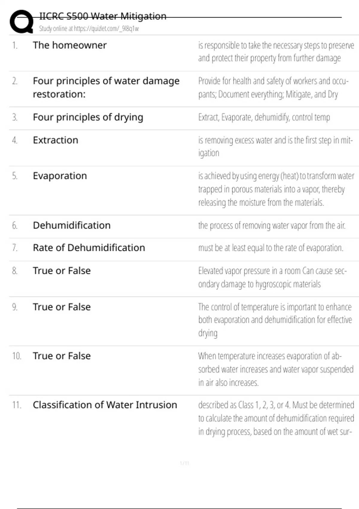 11. Classification of Water Intrusion described as Class 1, 2, 3, or 4. Must be determined