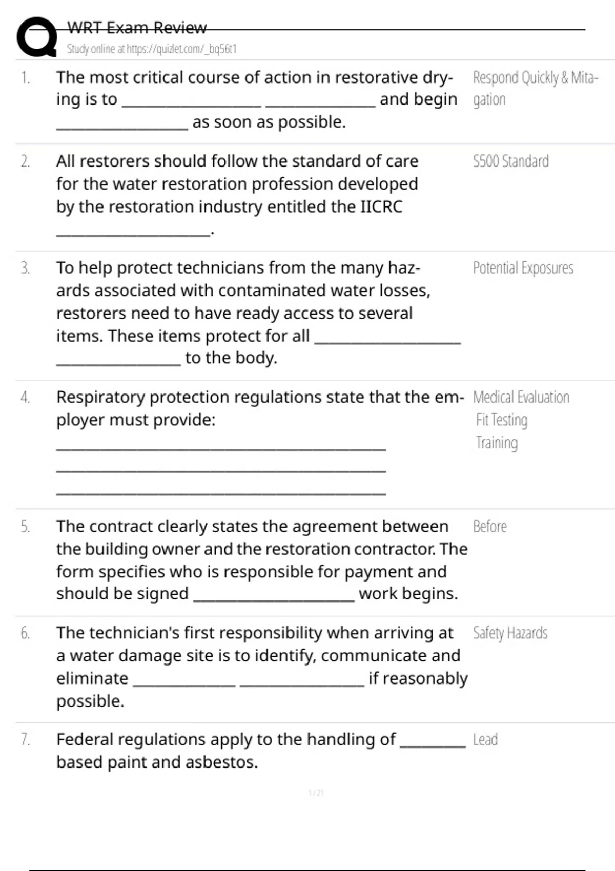 1. The most critical course of action in restorative dry- Respond Quickly & Mita-
