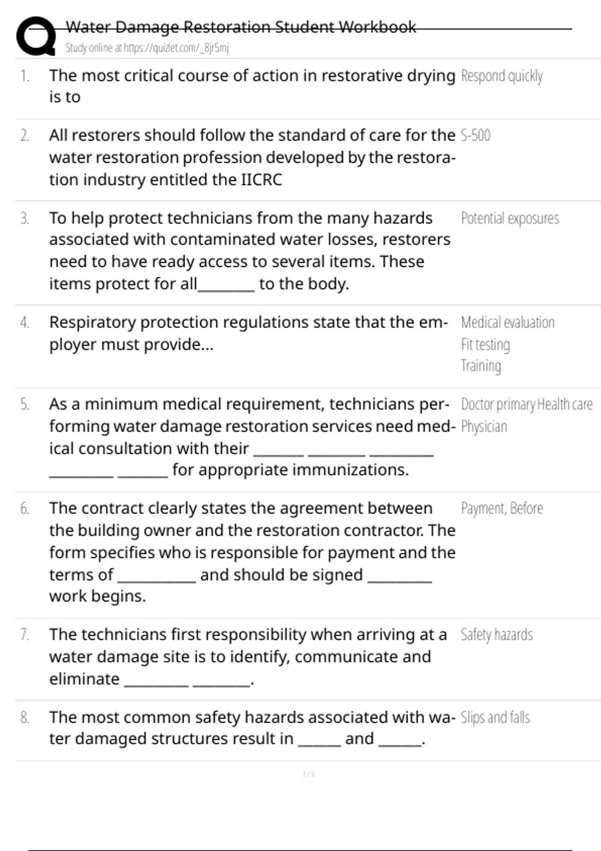 1. The most critical course of action in restorative drying Respond quickly