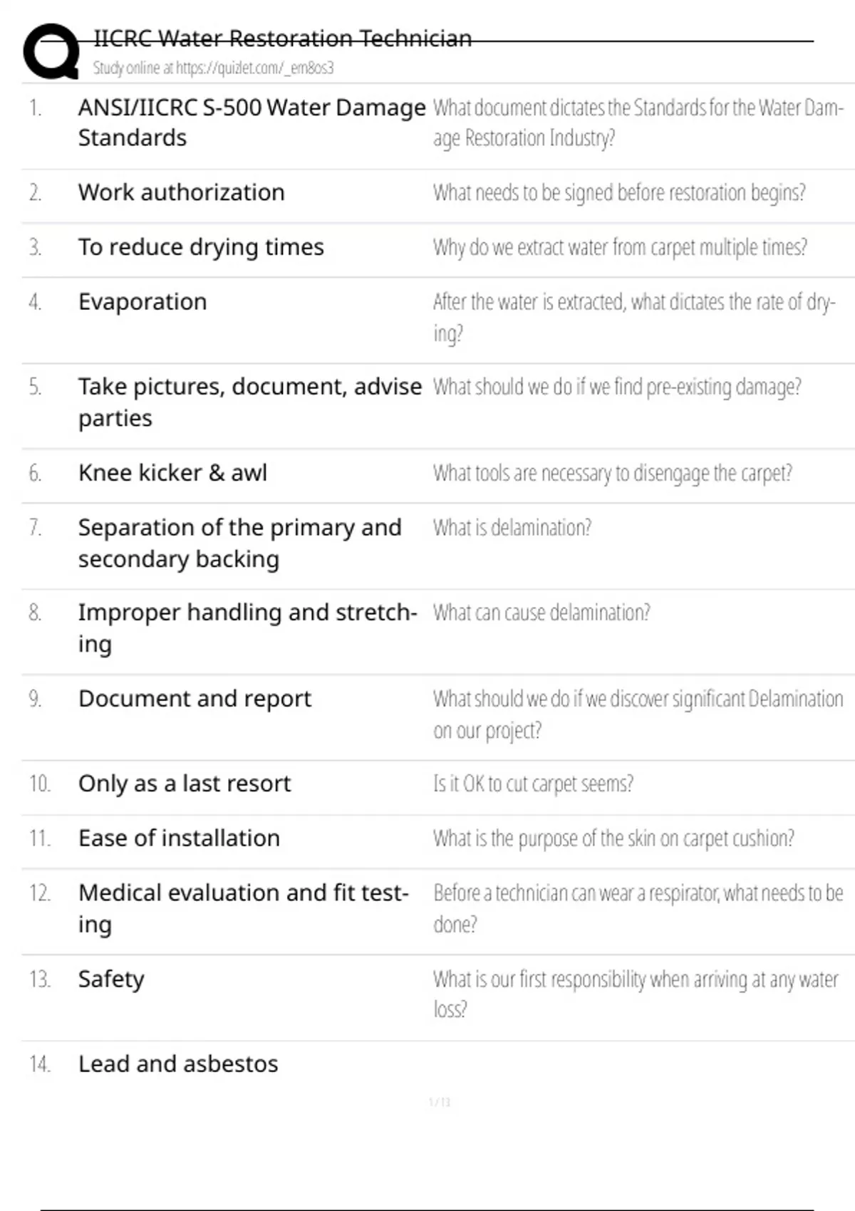 1. ANSI/IICRC S-500 Water Damage What document dictates the Standards for the Water Dam-