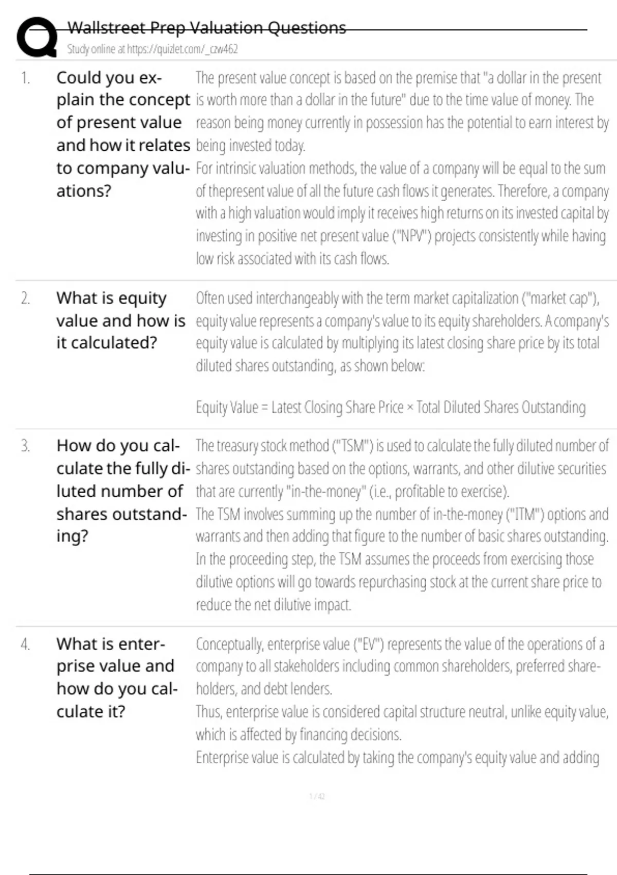 Wallstreet Prep Valuation Questions