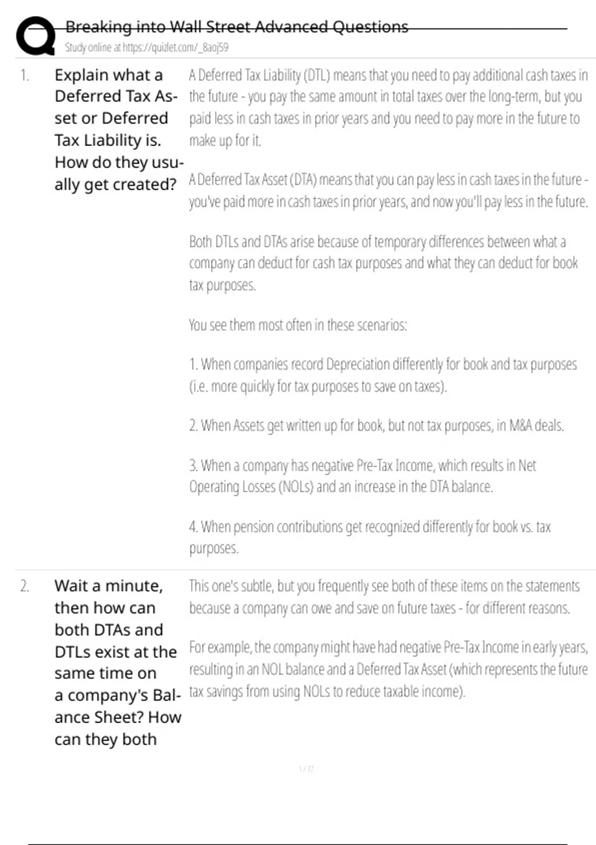 1. Explain what a A Deferred Tax Liability (DTL) means that you need to pay additional cash taxes in