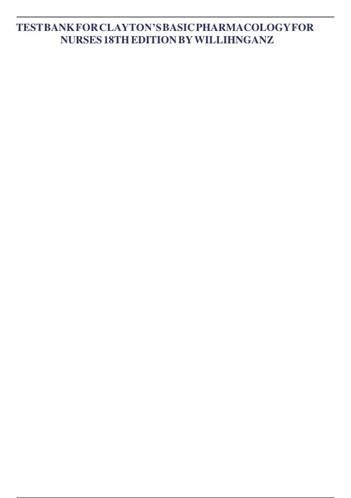 ,TEST BANK FOR CLAYTON’S BASIC PHARMACOLOGY FOR