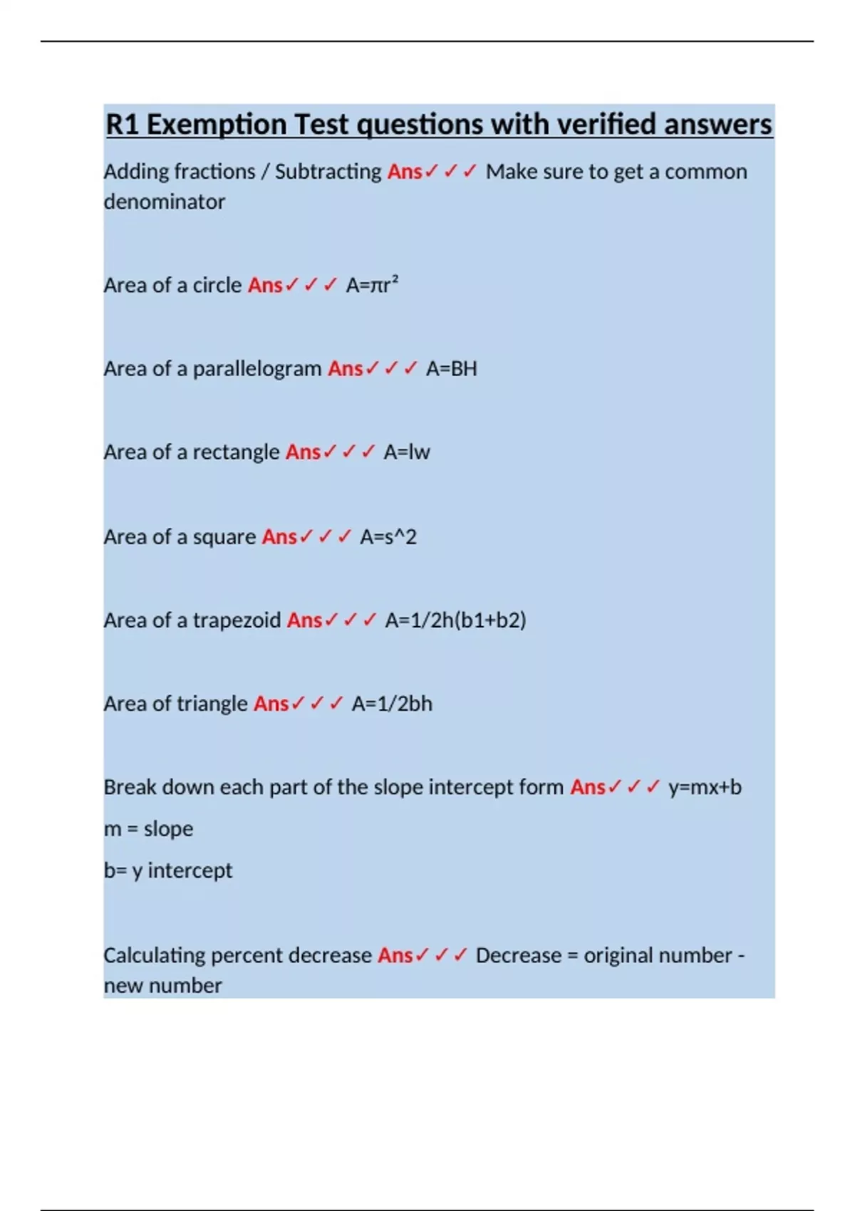 Break down each part of the slope intercept form Ans✓✓✓ y=mx+b