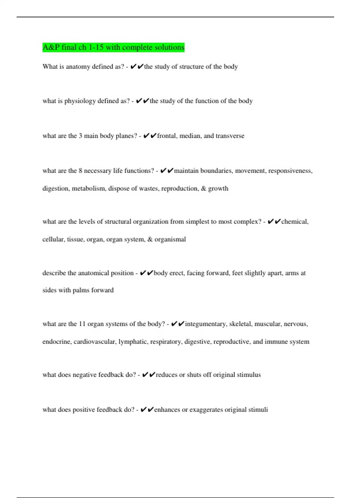 A&P final ch 1-15 with complete solutions